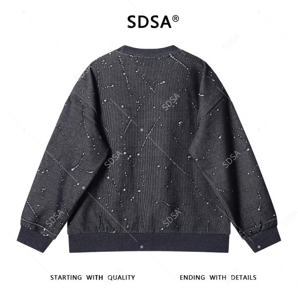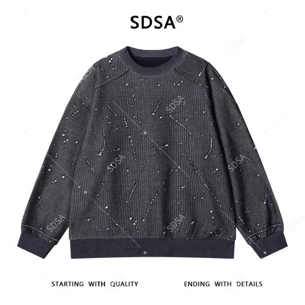 SDSA男士秋冬新款痞帅男装时尚韩版磨破撞色圆领卫衣百搭套头上衣