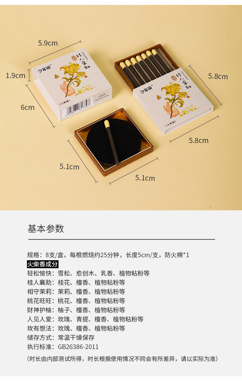 喜薰少年游系列火柴薰香桂花玫瑰桃花柚子茉莉香薰便携室内线香