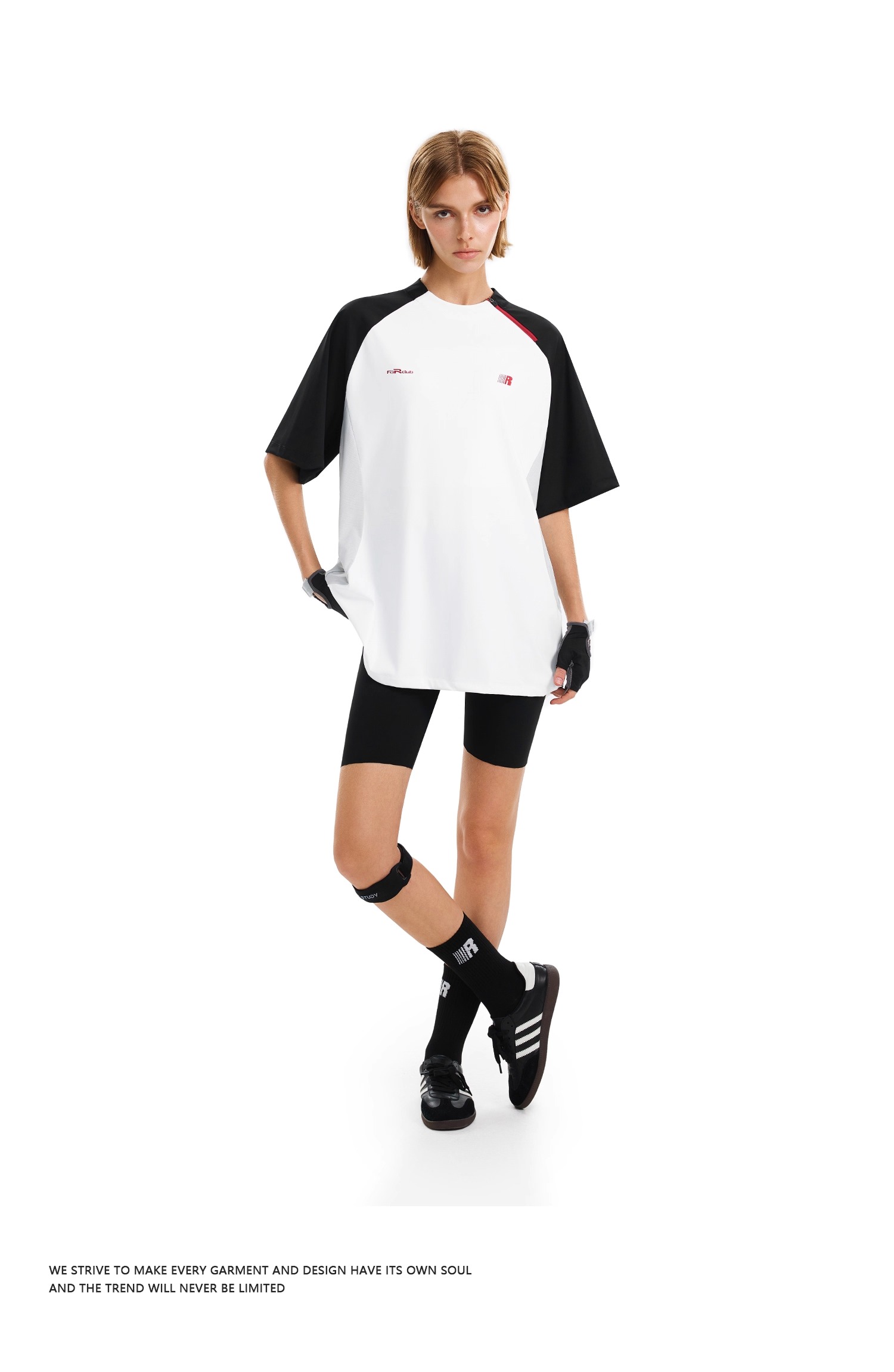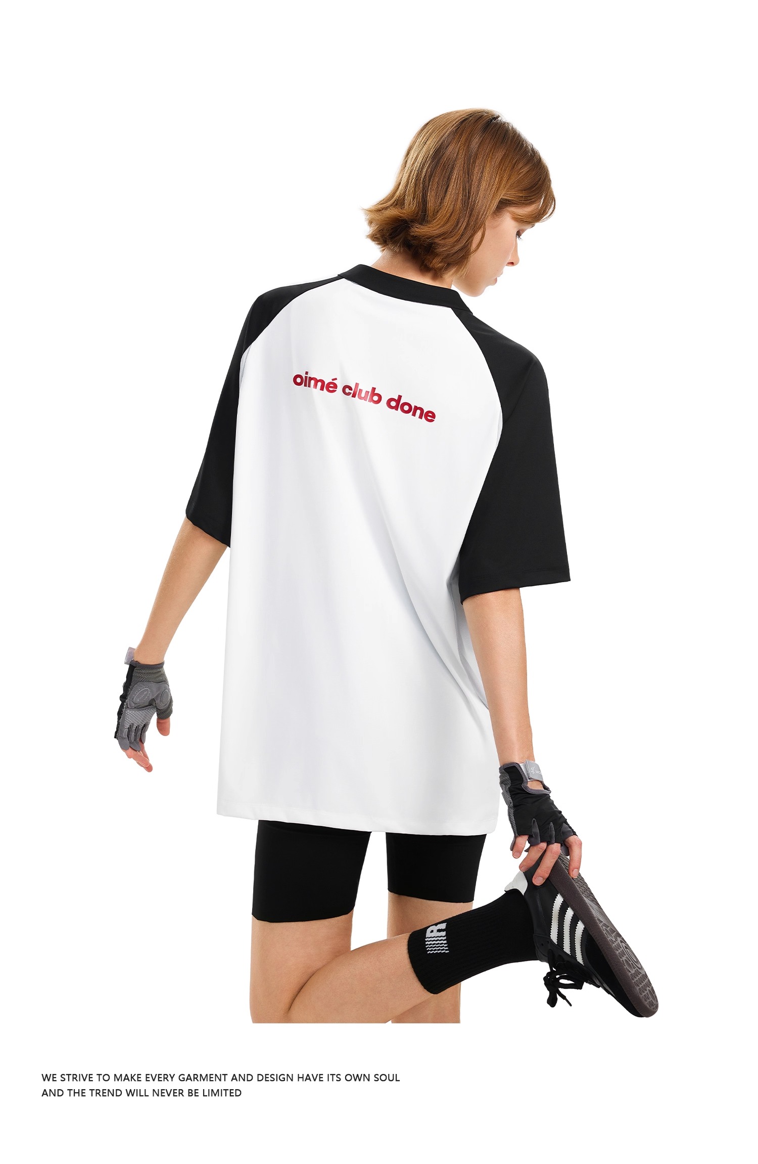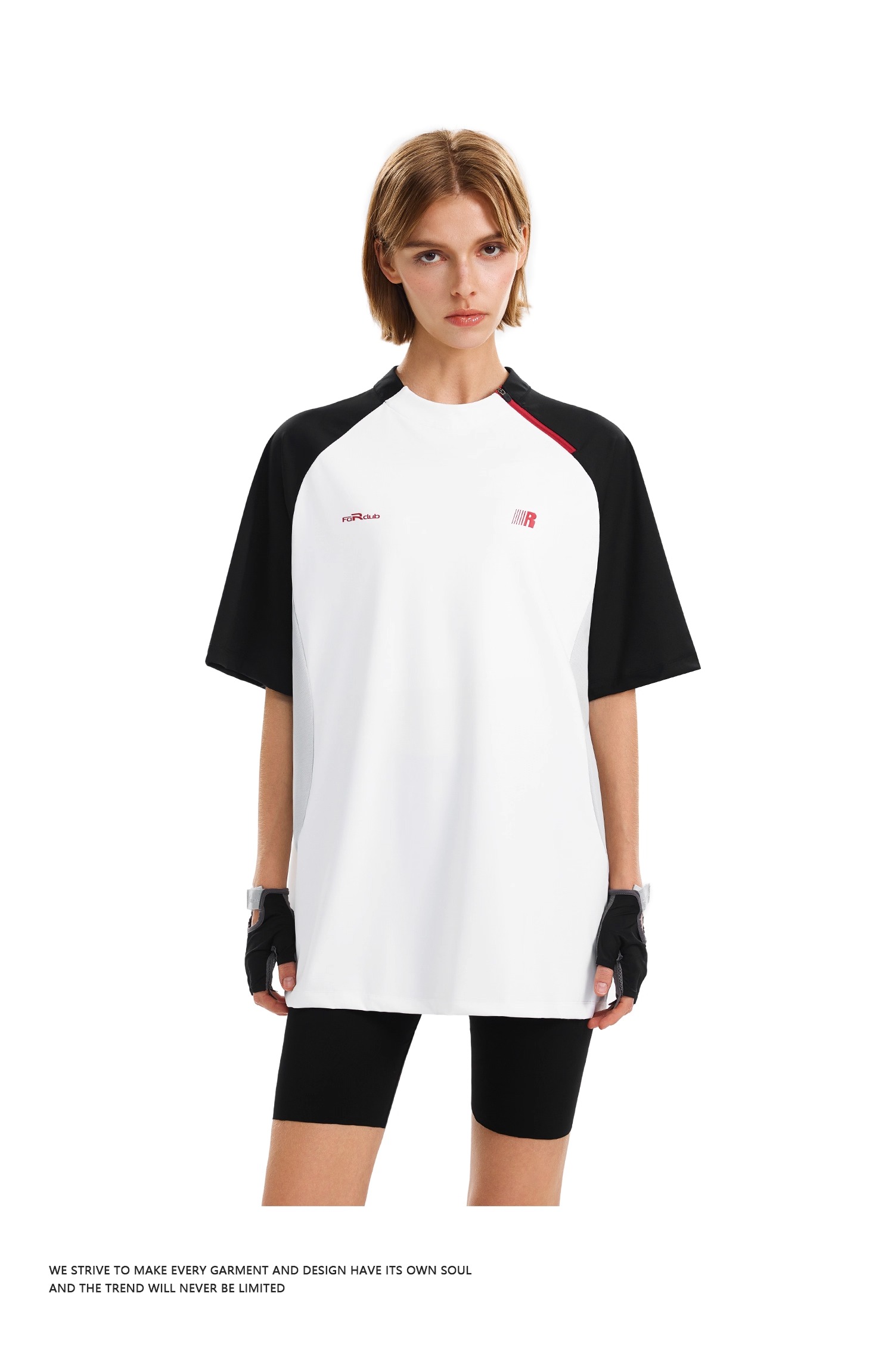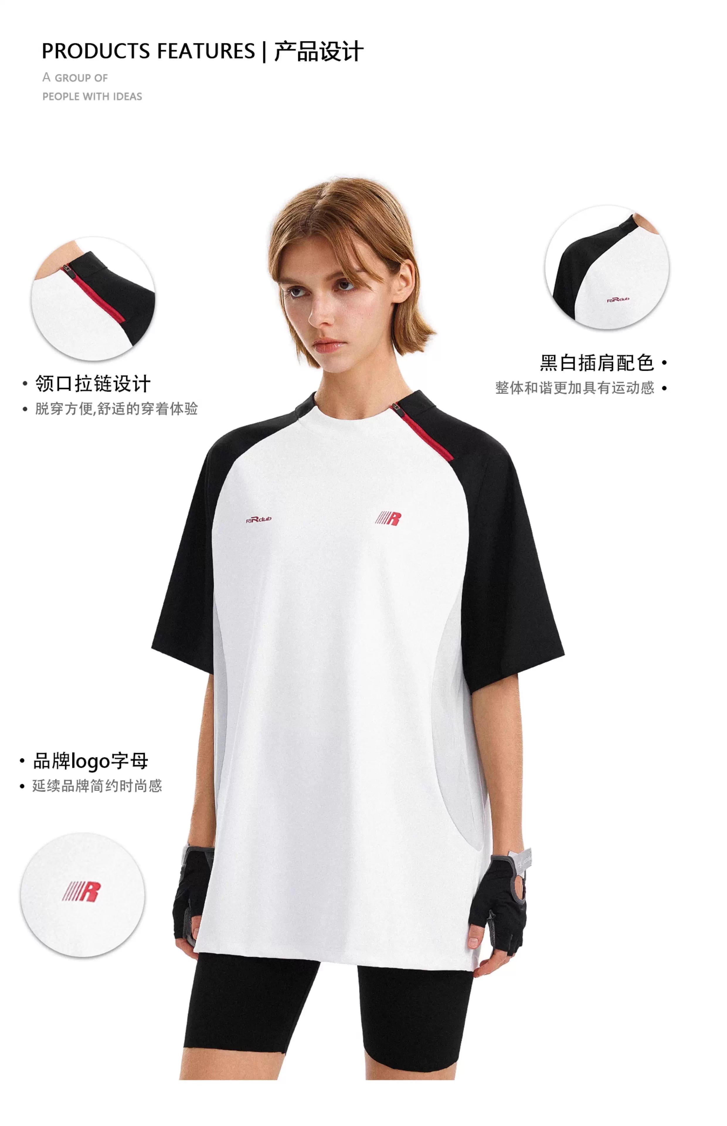 FDR旗舰店 插肩袖斜拉链拼接速干短袖t恤男女夏运动宽松情侣上衣