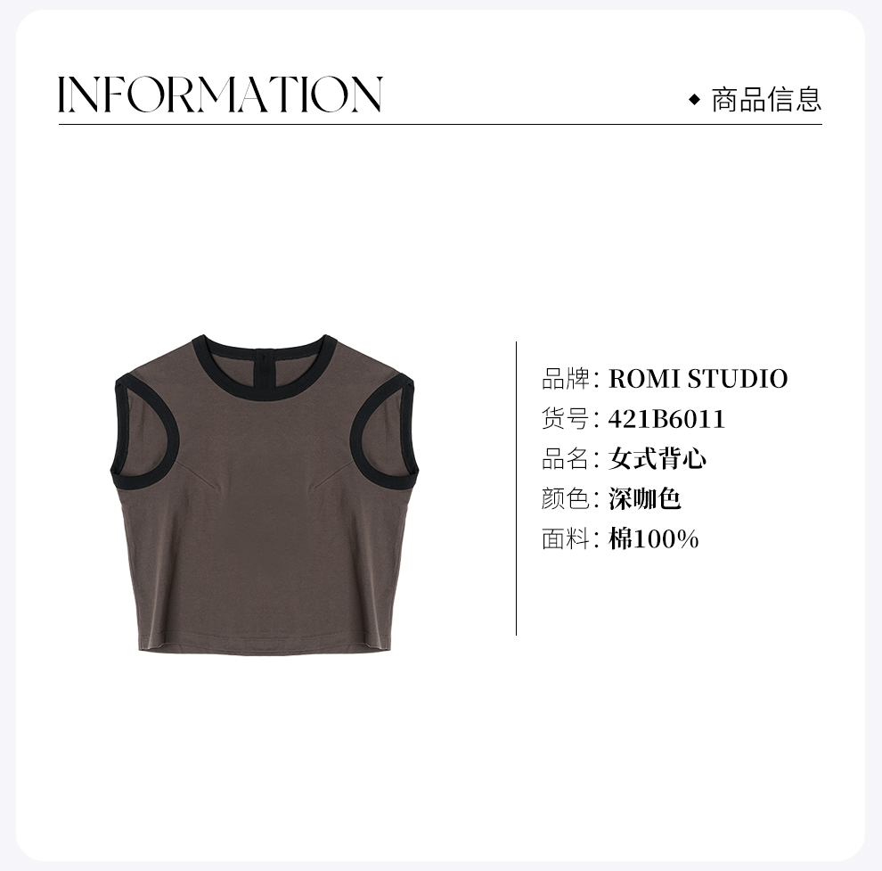 ROMI STUDIO ”美式复古“ 100%精梳棉后领扣无袖针织背心 421B6011