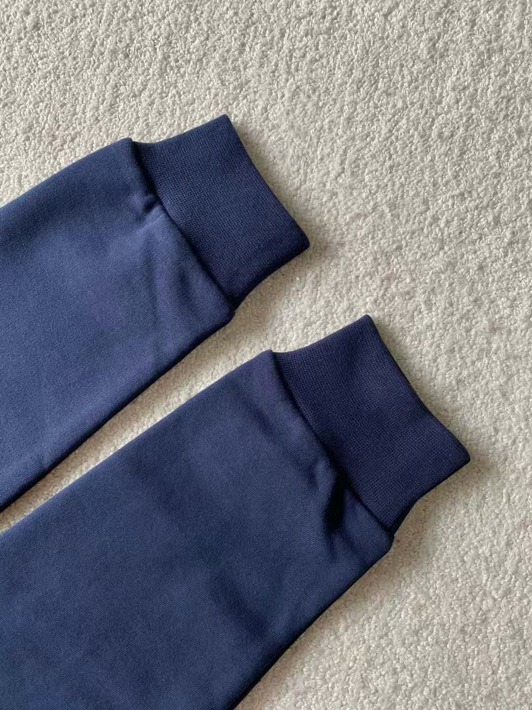 采用26S双纱面+10S底纱,380g;搭配21S双纱,380g。鱼鳞底面料是一种特殊工艺制成的面料,其特点是底面具有类似鱼鳞的纹理。具有较高的克重和一定的厚度,这使得它有一定的保暖性能;料经过特殊处理,具有良好的耐久性和耐磨性,不易起球或变形。