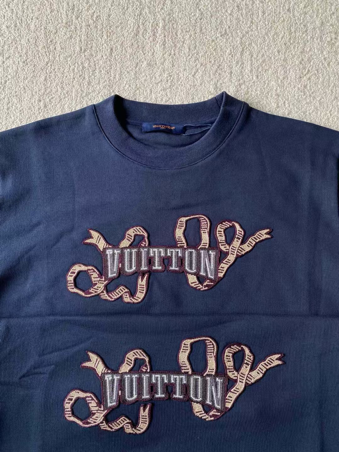 # Vuitton 贴饰后部刺绣手写体标识