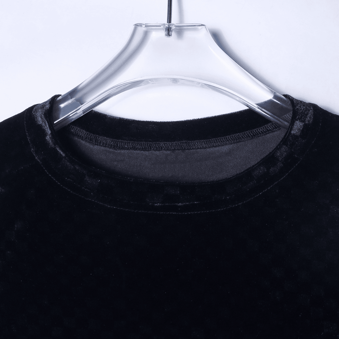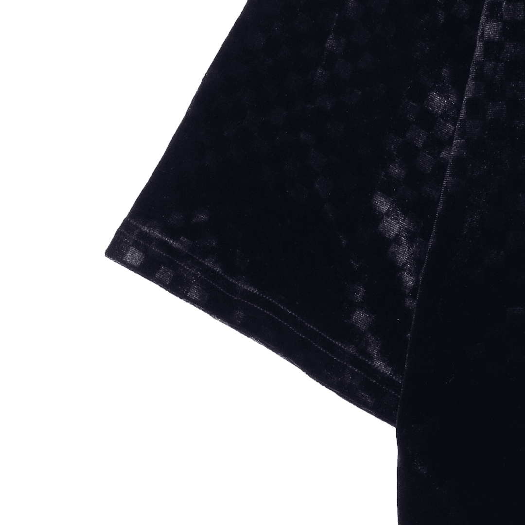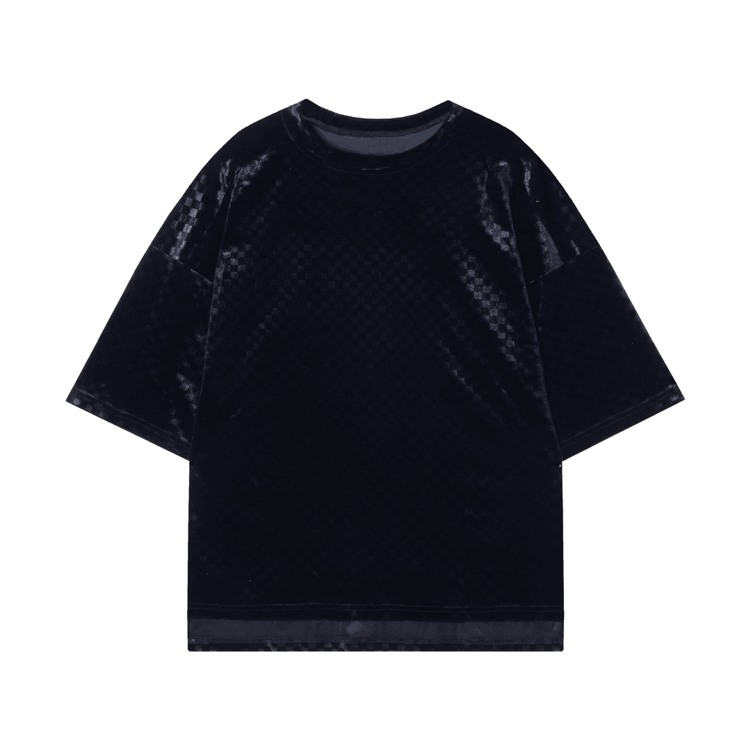 T1487新款时尚绒面格子拼接男士短袖百搭潮流休闲上衣宽松小众T恤