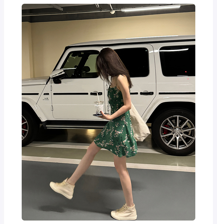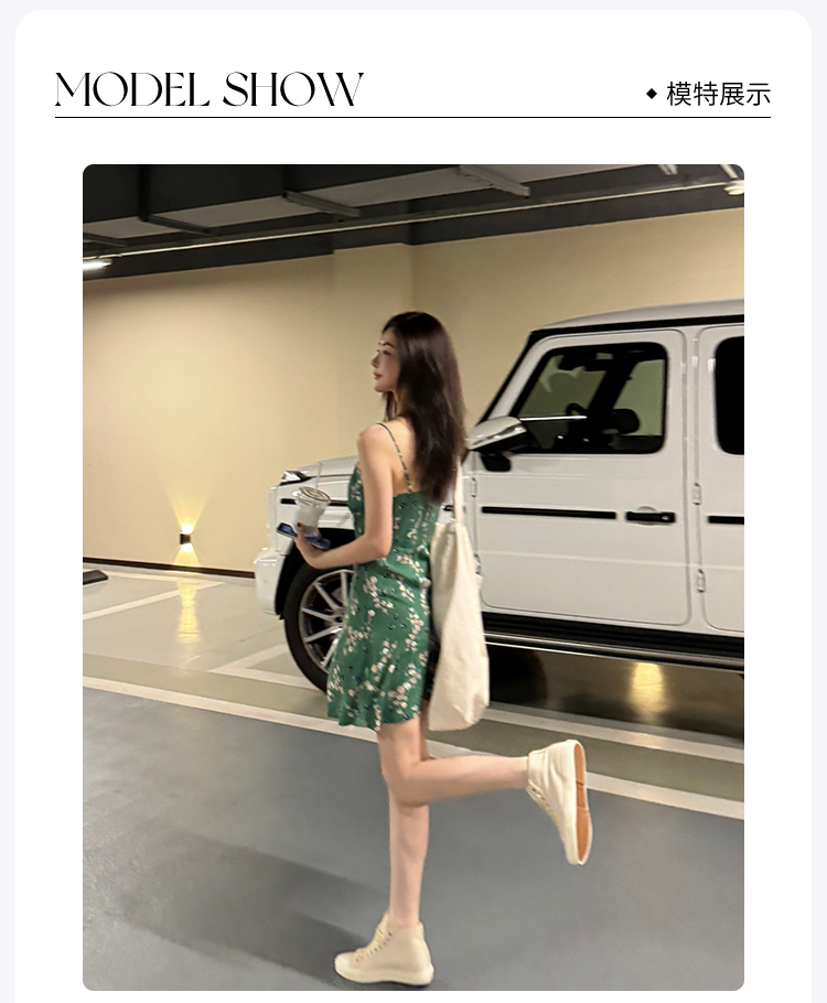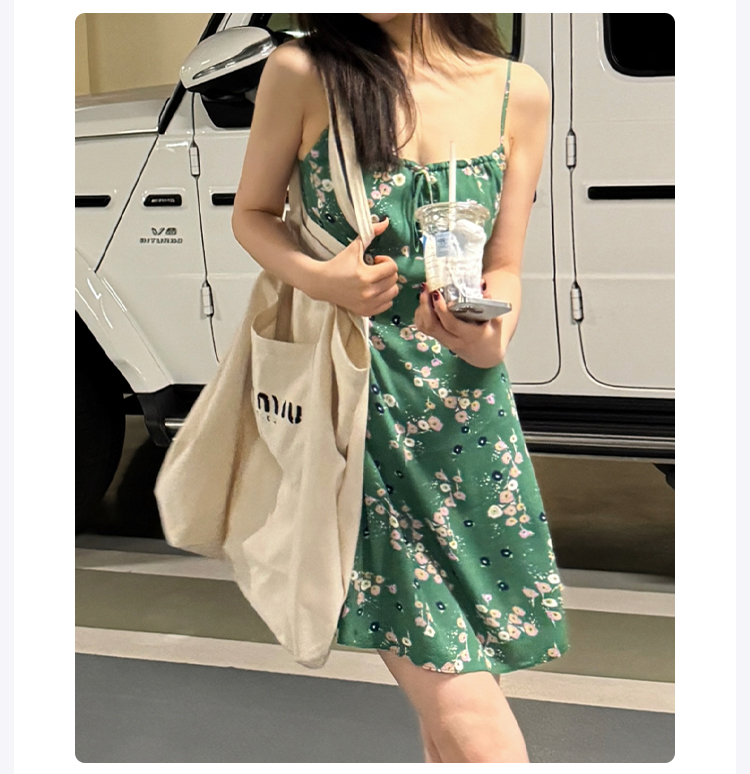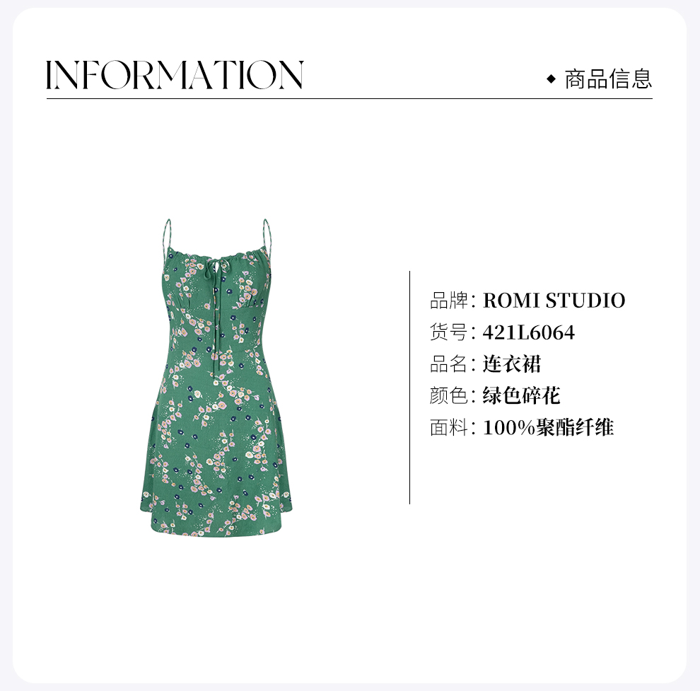 ROMI STUDIO “轻盈时刻” 丝感垂顺小碎花打揽吊带连衣裙 421L6064