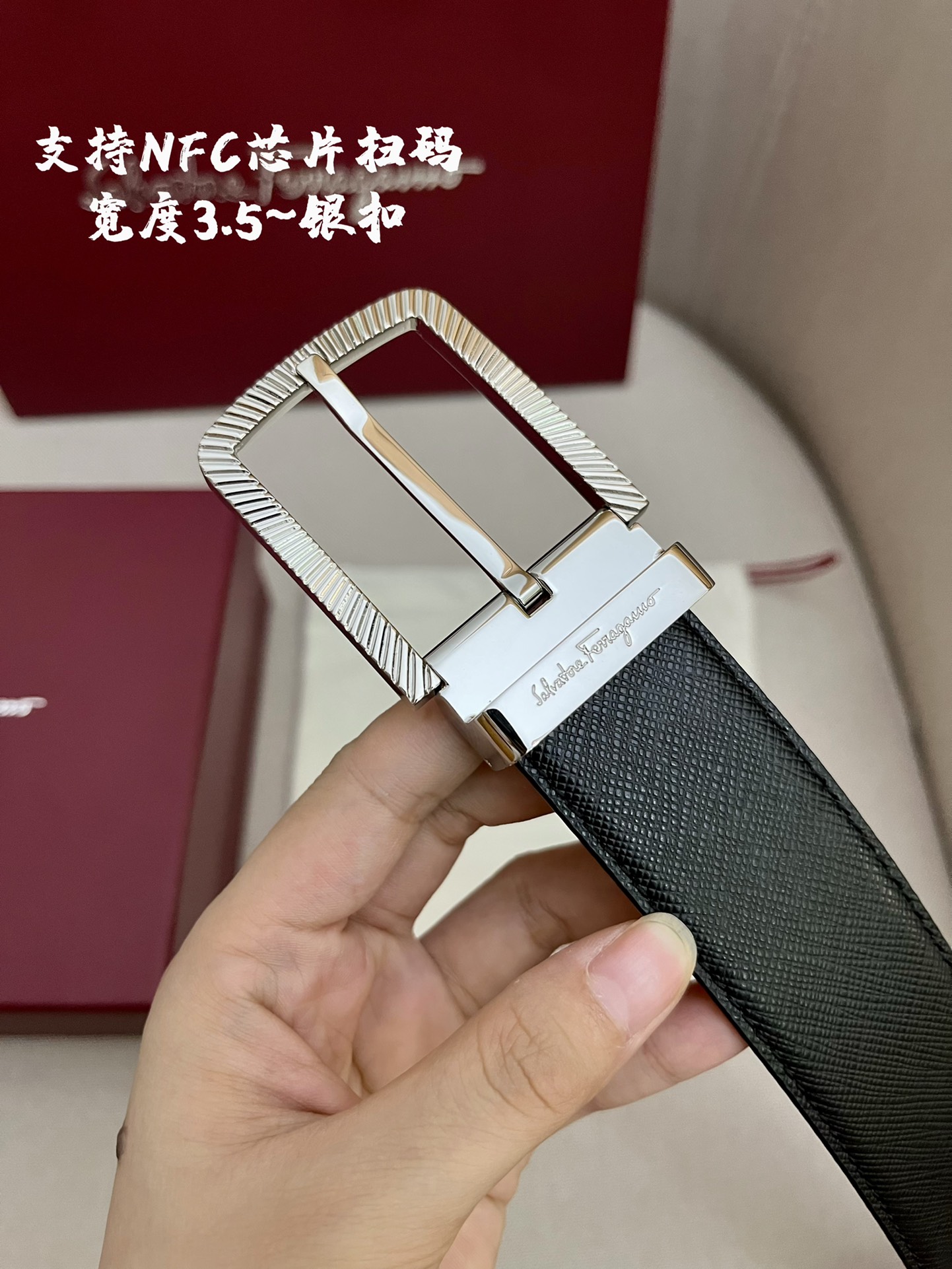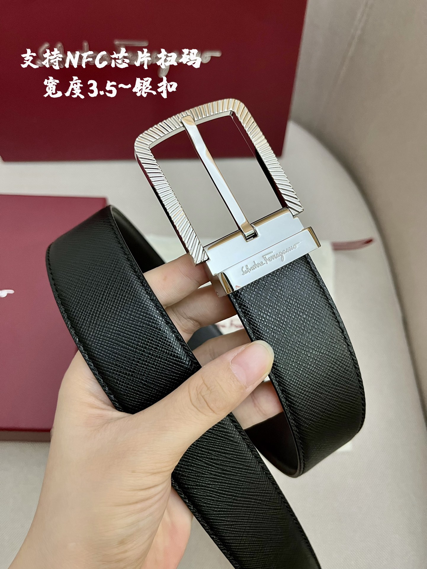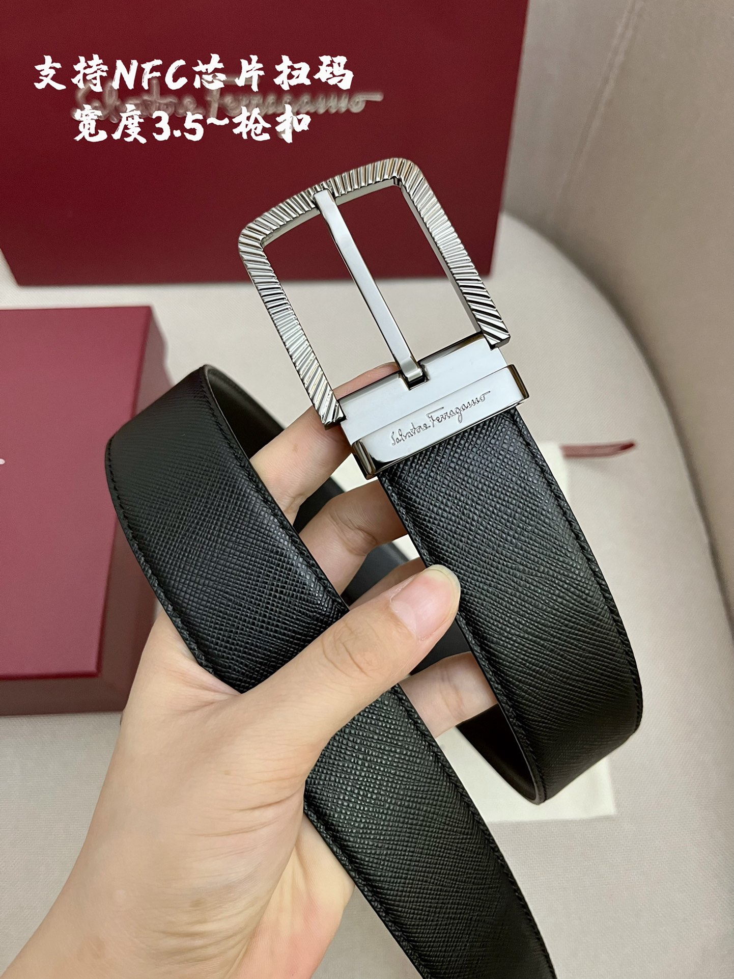 菲拉格慕. 专柜同步最新上市 扣头:(金/银 可选)新款纯钢扣 带身 寸3     3.4厘米:双面选用进口头层牛皮制作; (亮点)该皮带可以调节.  且能根据需要剪载,达到修身效果。