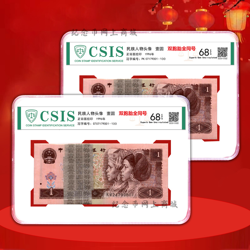 四版96版1元,2张纸币号码全部相同,双胞胎全同号