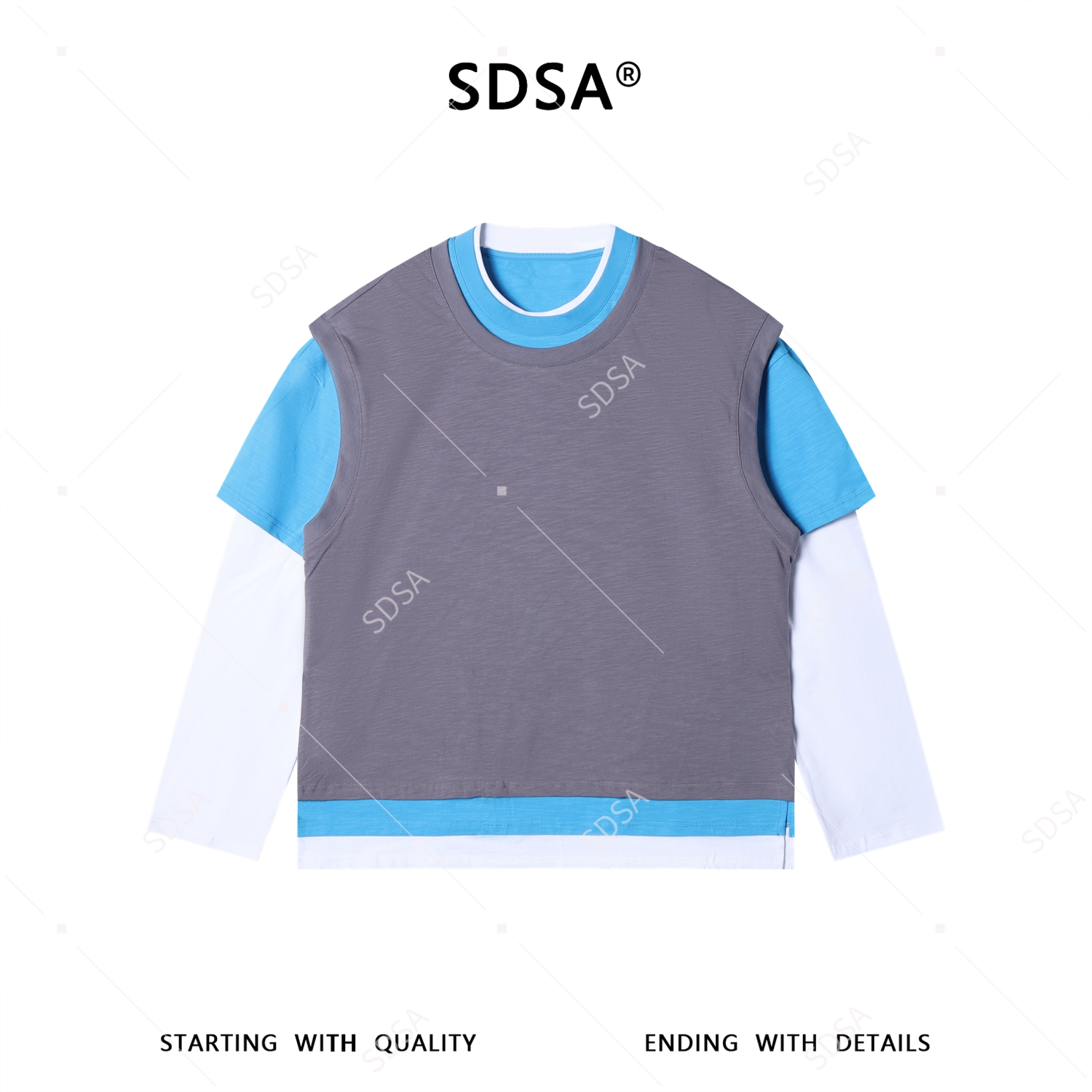 26011SDSA男装2026新款高贵轻奢韩版撞色拼接假两件长袖T恤百搭时尚