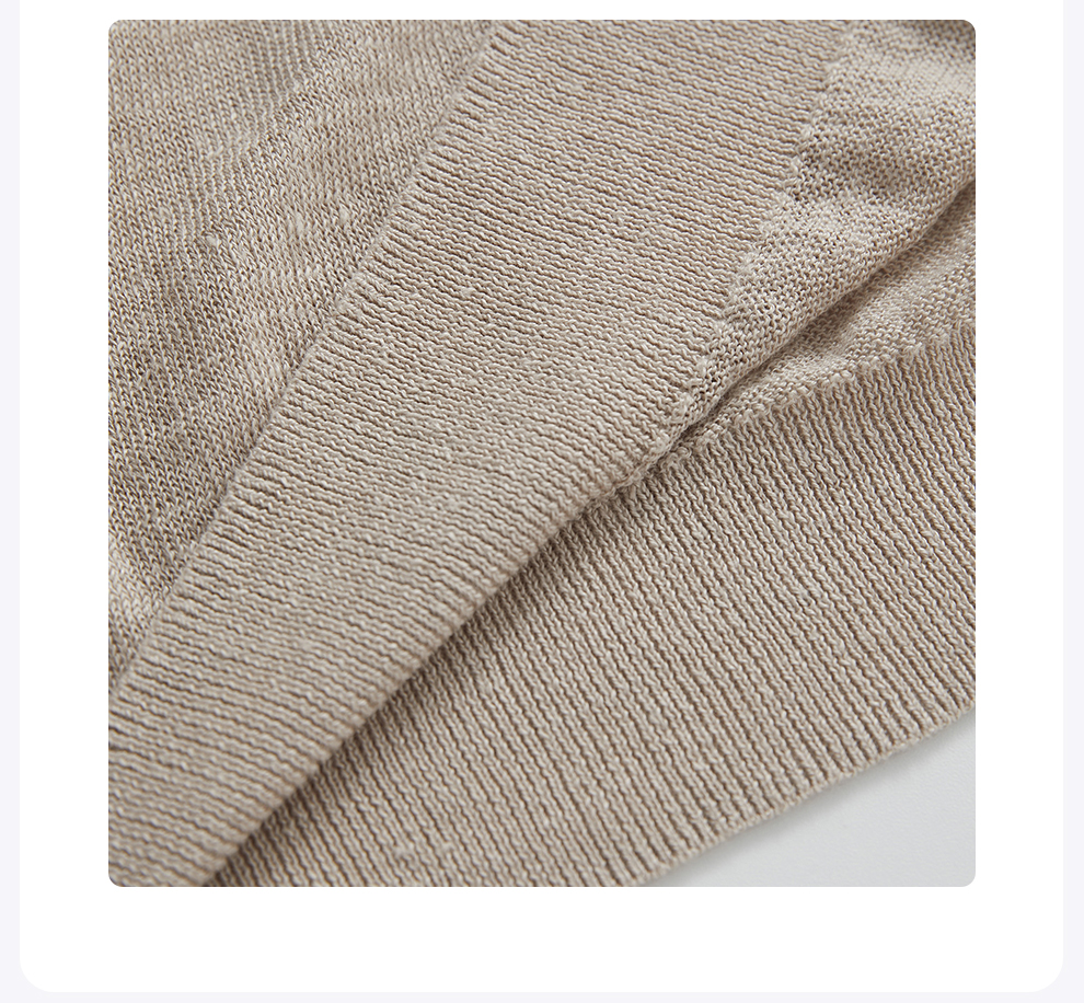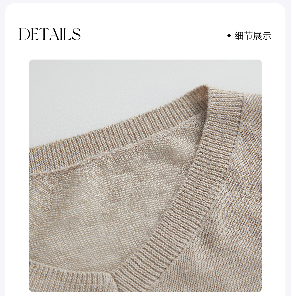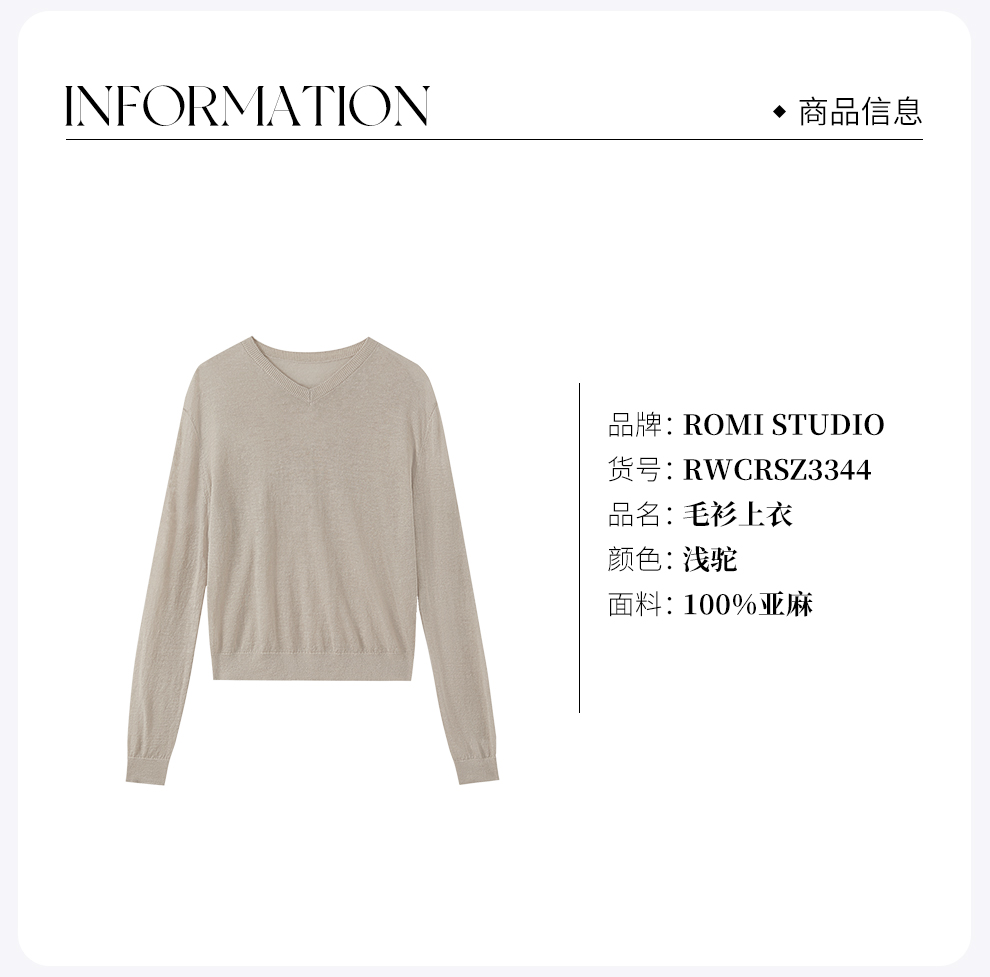 ROMI STUDIO 100%欧洲进口亚麻V领褶皱轻薄长袖针织衫 RWCRSZ3344