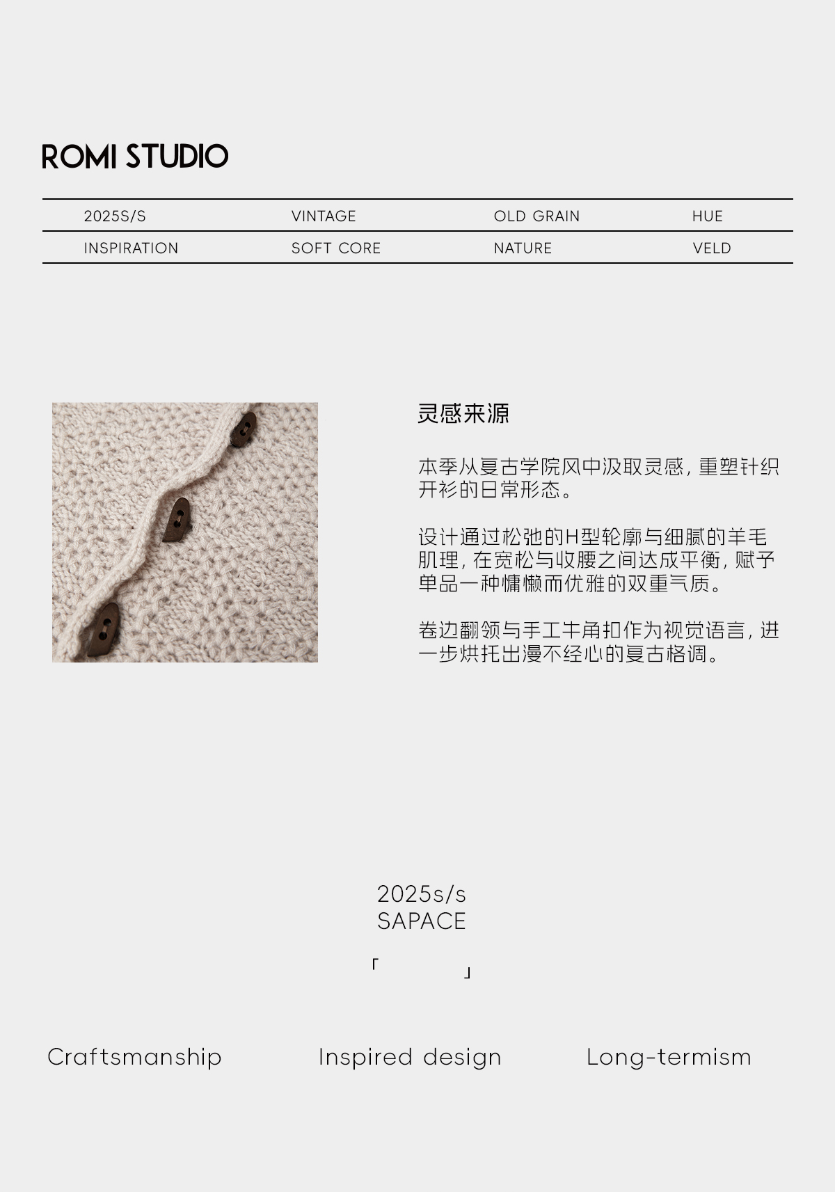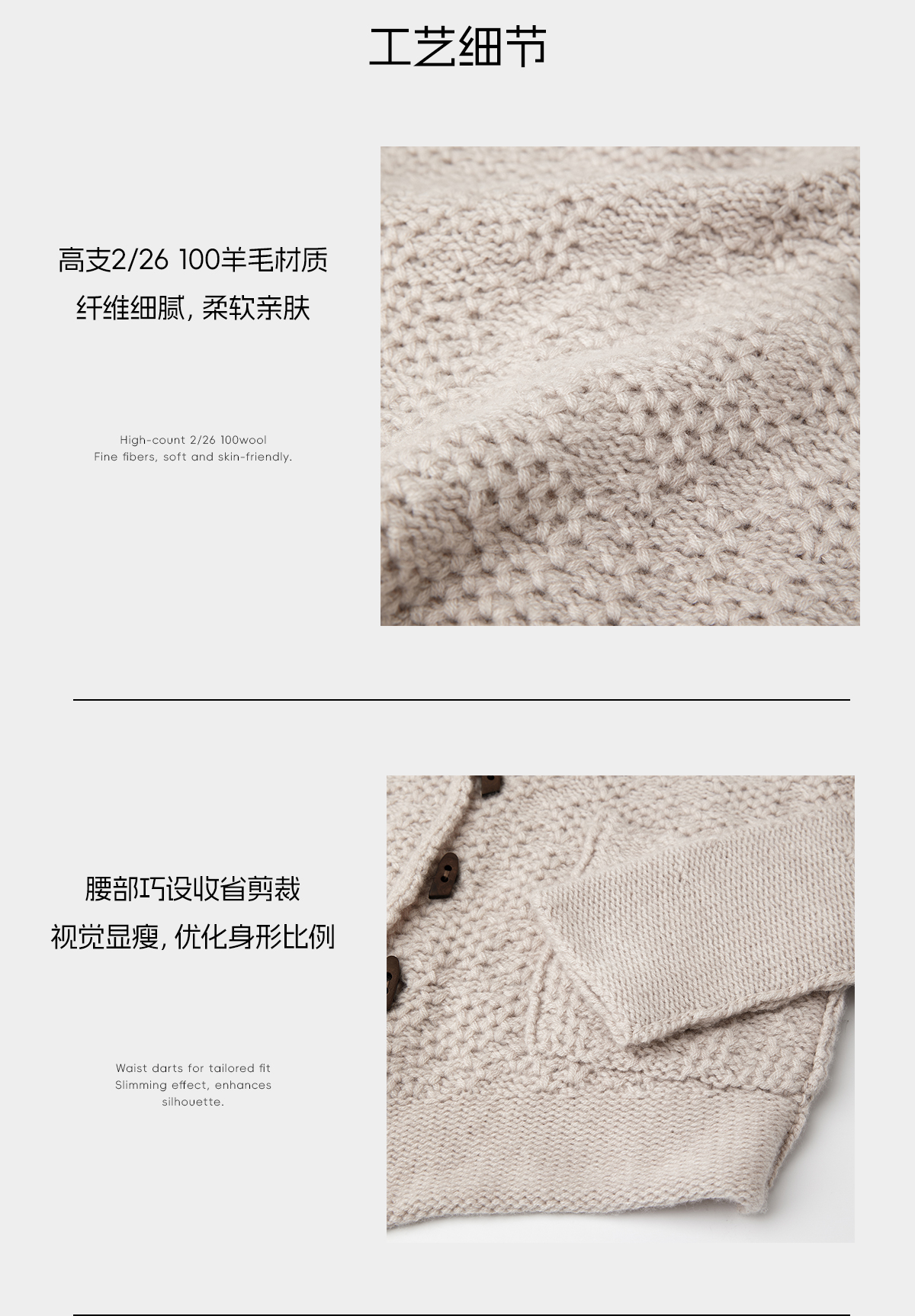 ROMI STUDIO“中古匠心”羊毛混纺3针嵌花花型收腰开衫RWCAWT5413