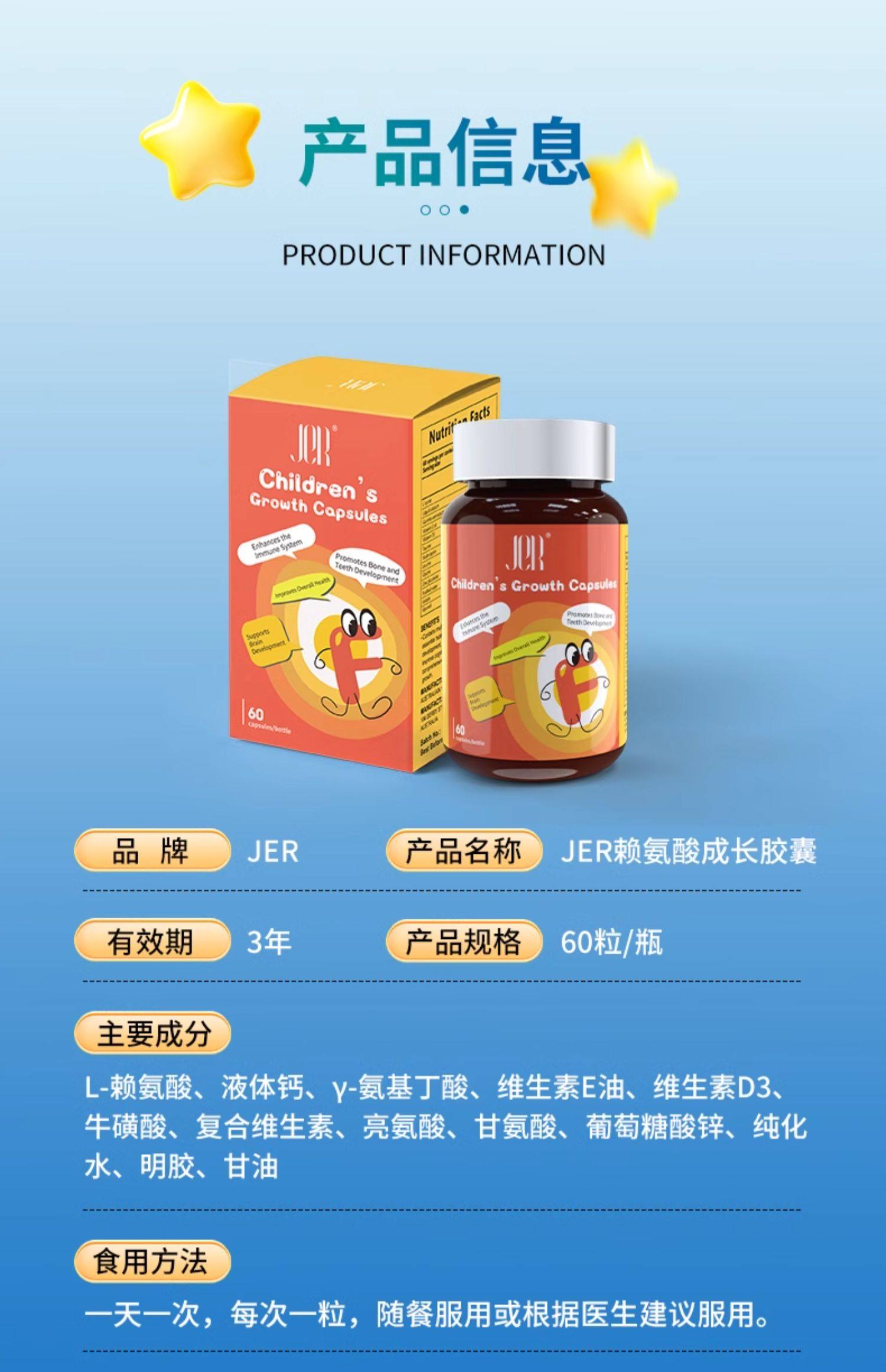 JER赖氨酸成长胶囊学生青少年进口骨骼发育免疫系统健康儿童胶囊