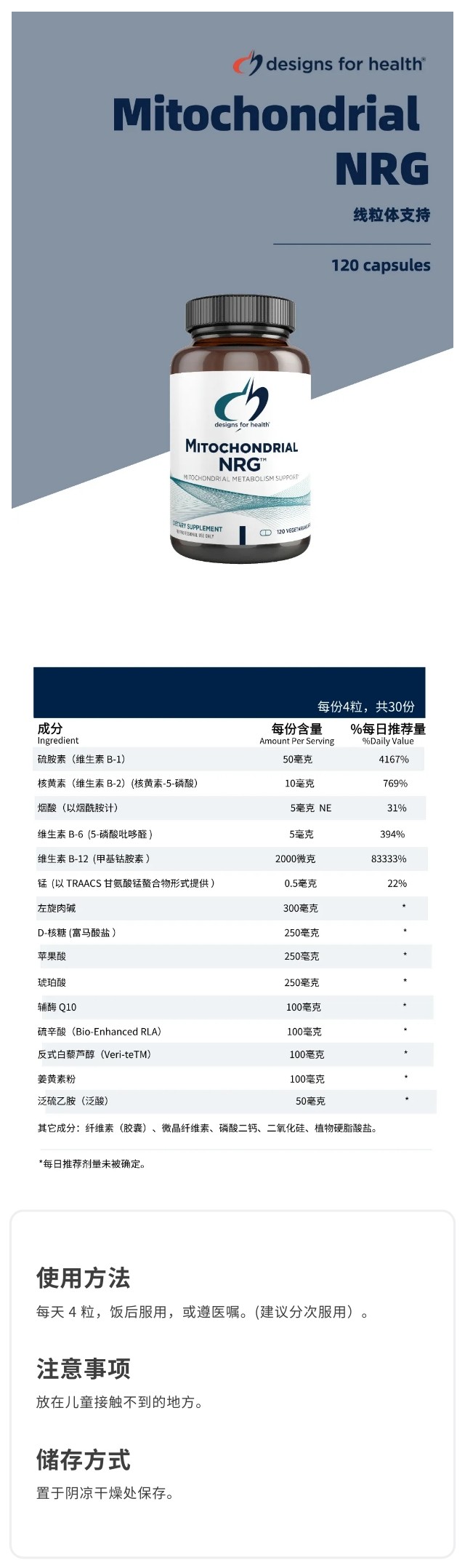 【香港直邮】健康设计 线粒体 MITOCHONDRIAL NRG 120粒 25.12