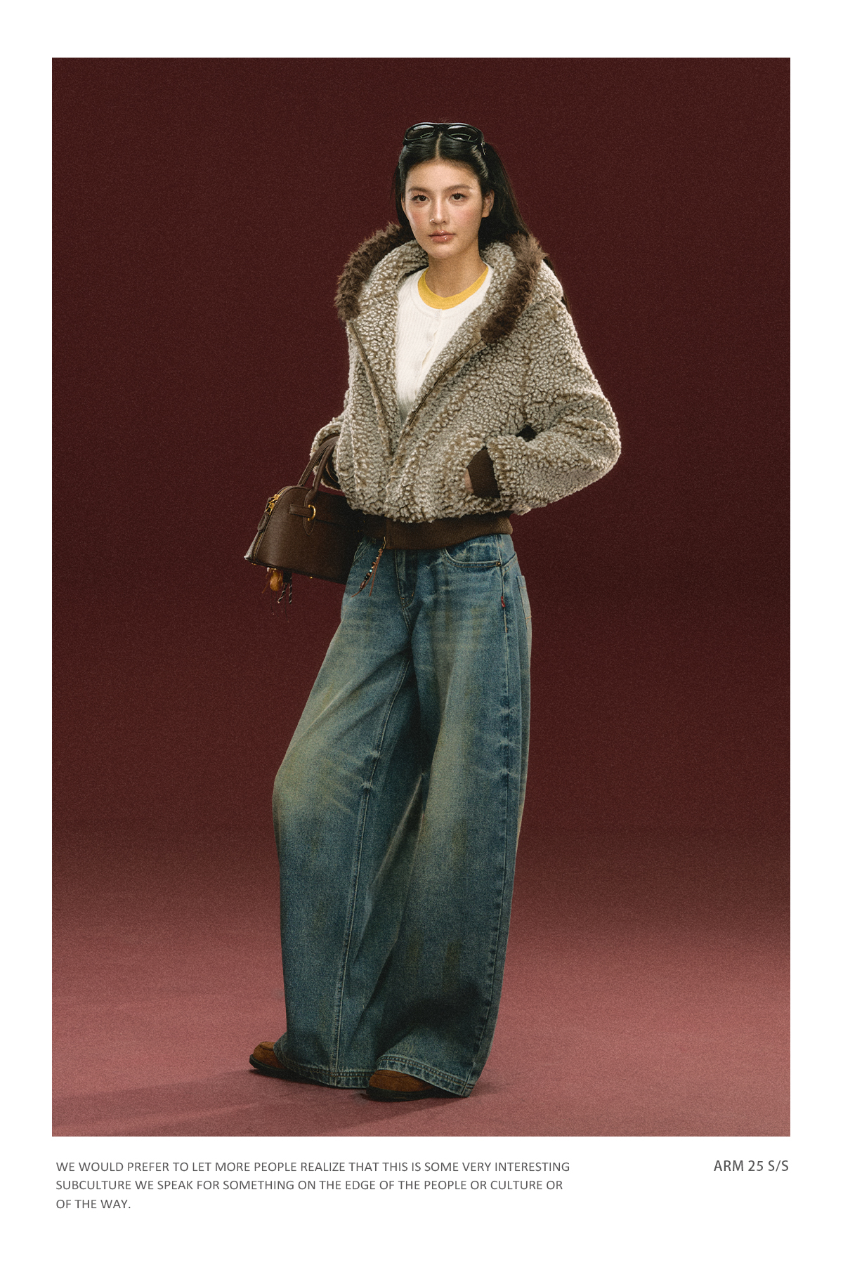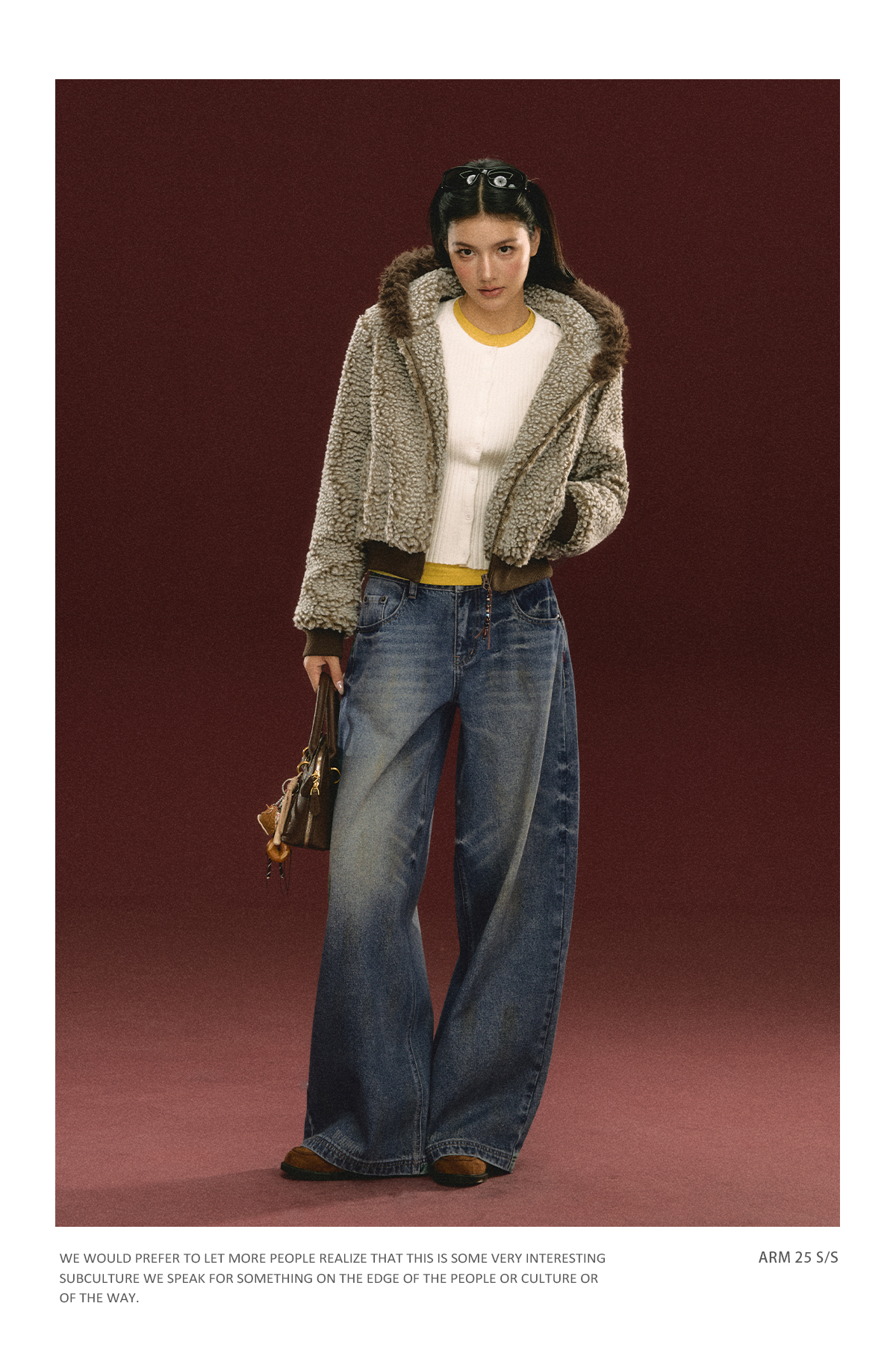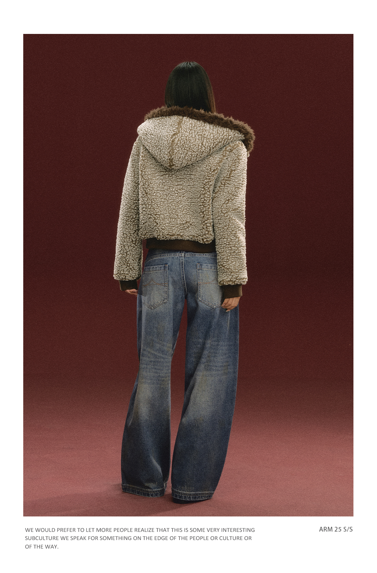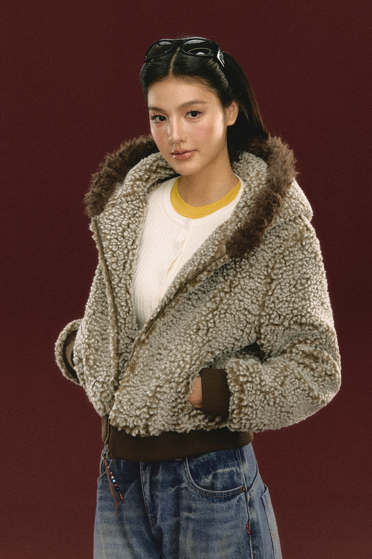 Ariseism 美式复古设计感羊羔绒连帽外套女秋冬新款保暖上衣