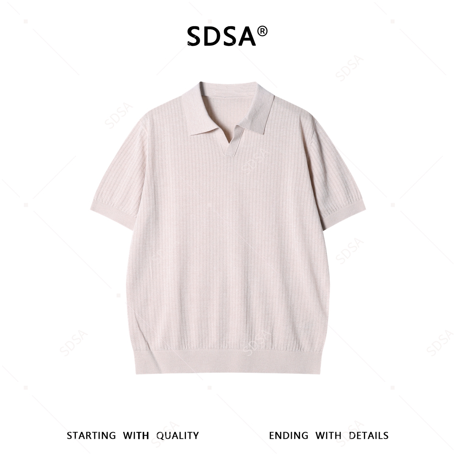 SDSA男装2026新款高贵轻奢简约纯色肌理海鸥领短袖T恤百搭休闲