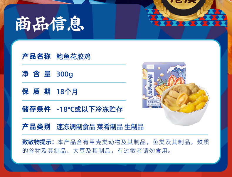 【拍一发三】御鲜锋鲍鱼花胶鸡 (1人份) 300g