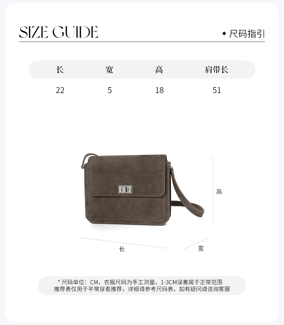 ROMI STUDIO100%头层羊皮革反绒面方形翻盖单肩斜跨包RWBLP31640