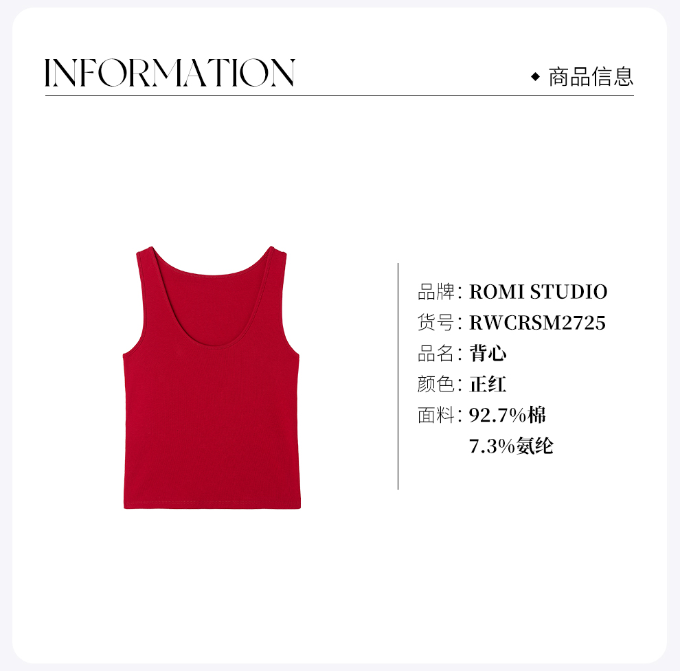ROMI STUDIO“简约复古”高弹罗纹轻薄柔顺U领修身背心 RWCRSM2725