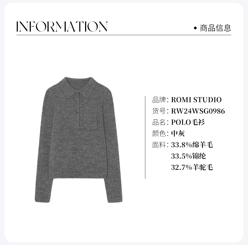 ROMI STUDIO“格雷高知”羊驼毛绵羊毛混纺翻领套头毛衫RW24WSG0986