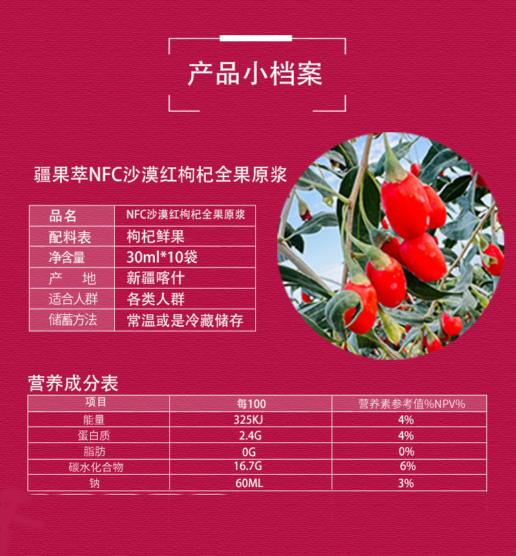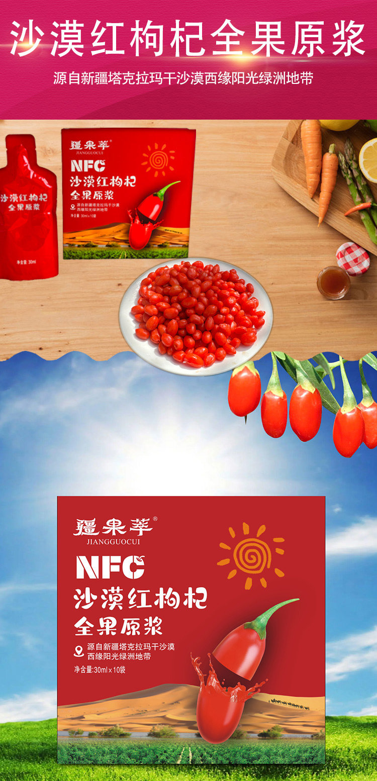 新疆喀什疆果萃NFC沙漠红枸杞全果原浆30ml*10袋/盒