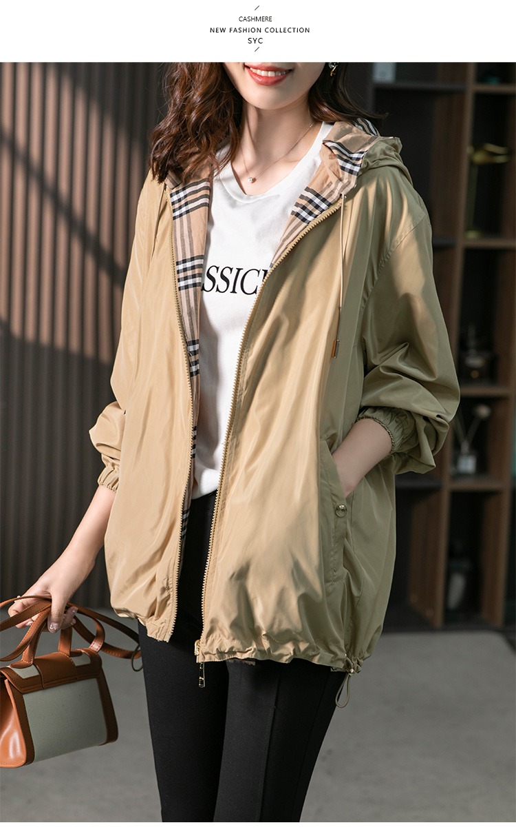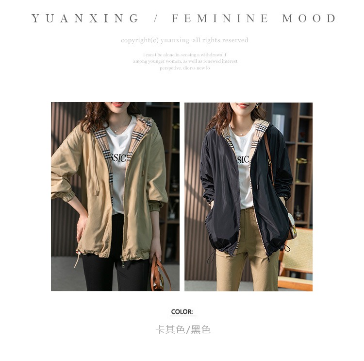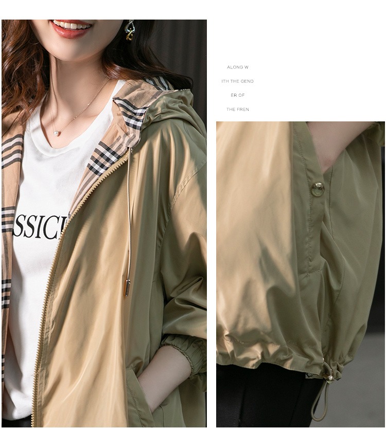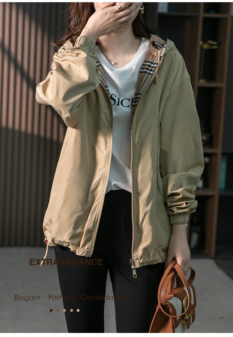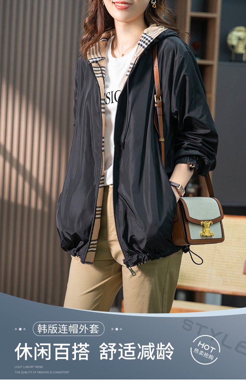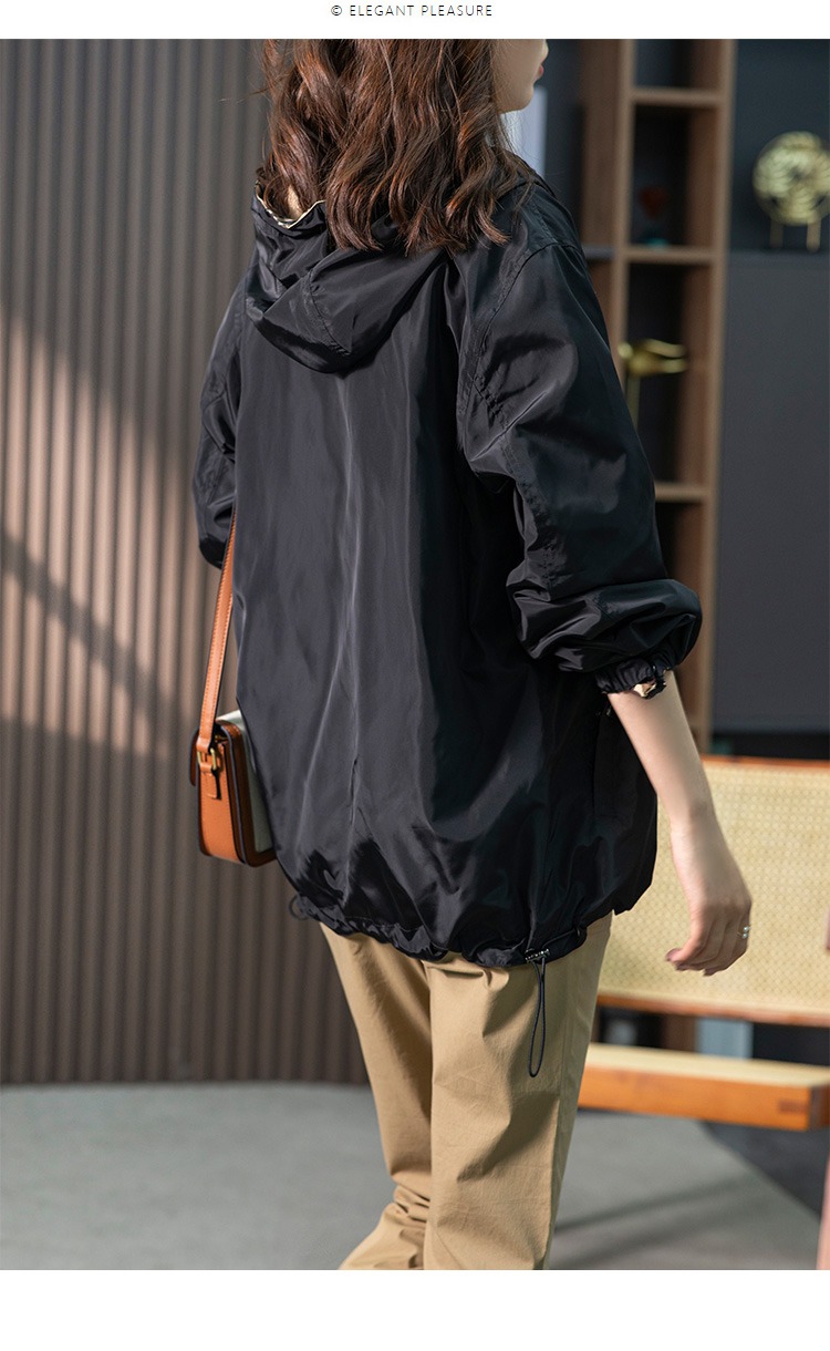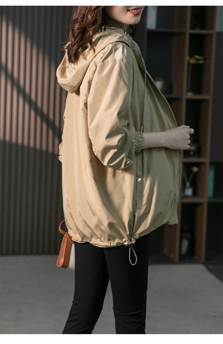 【现货7天】连帽短外套女2023秋装新款韩版宽松休闲夹克时尚百搭抽绳上衣