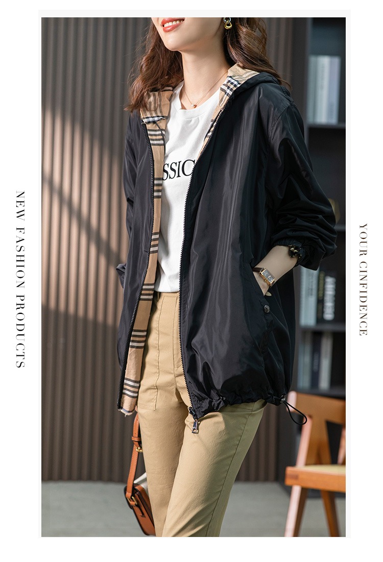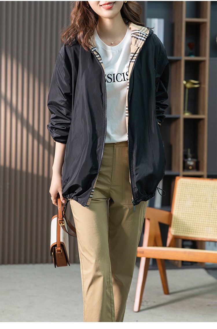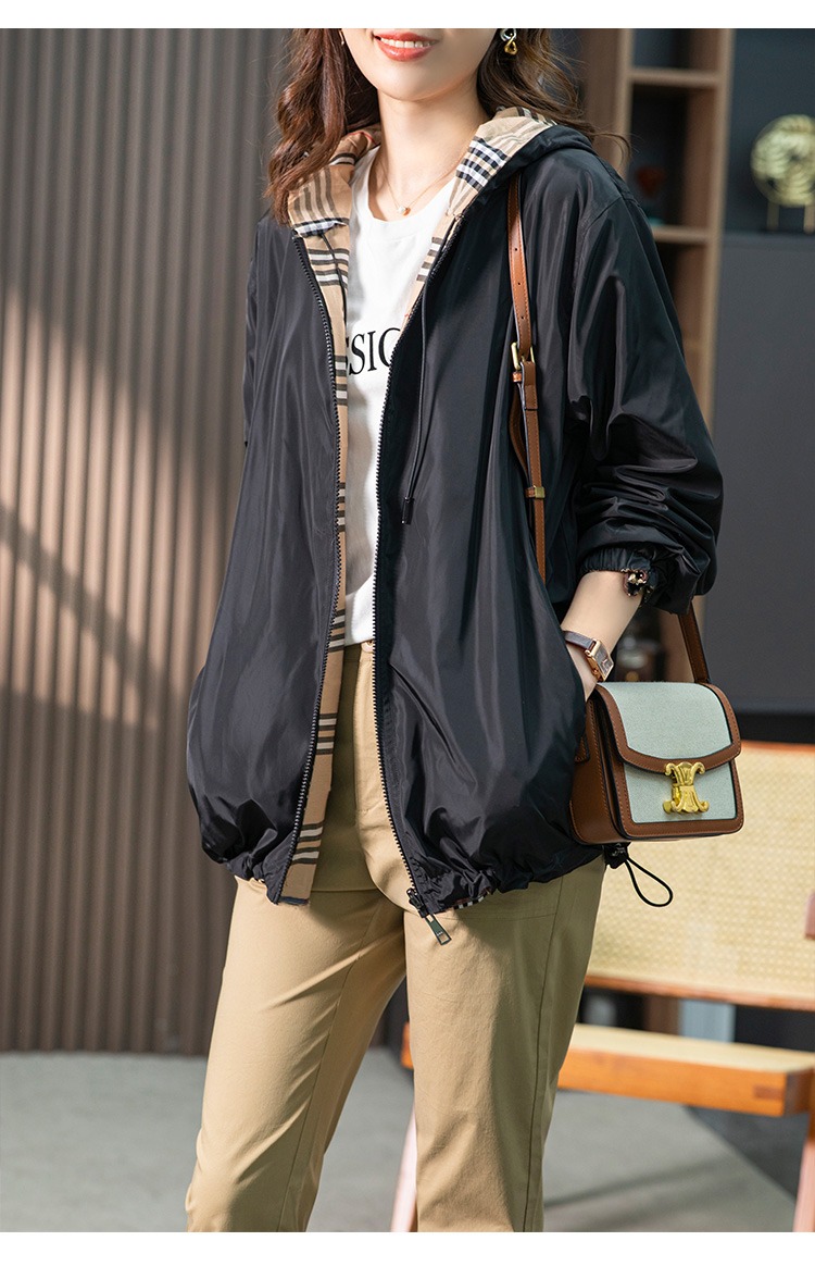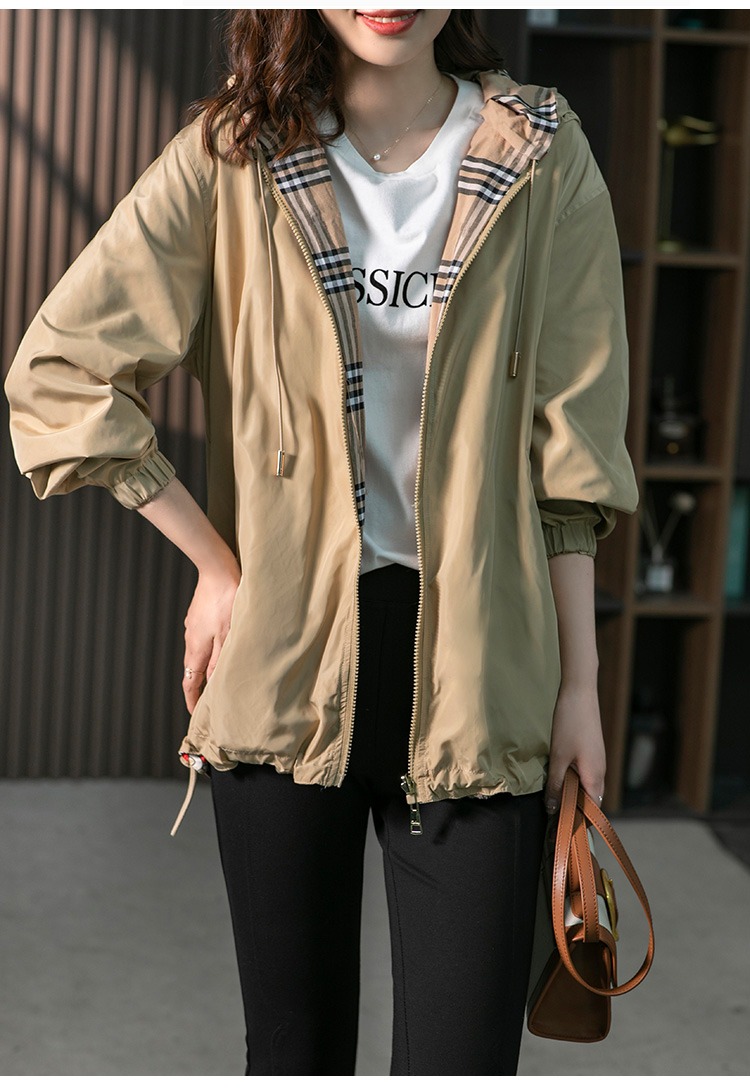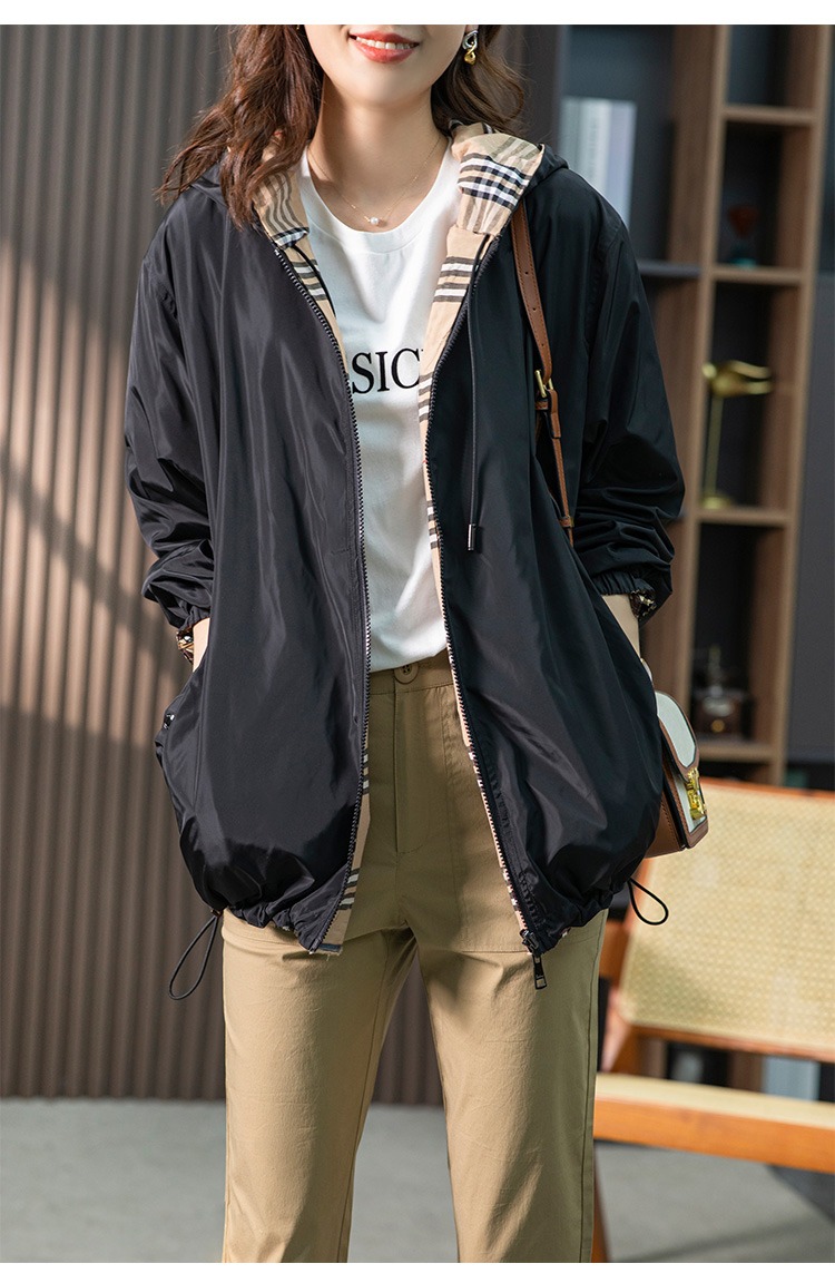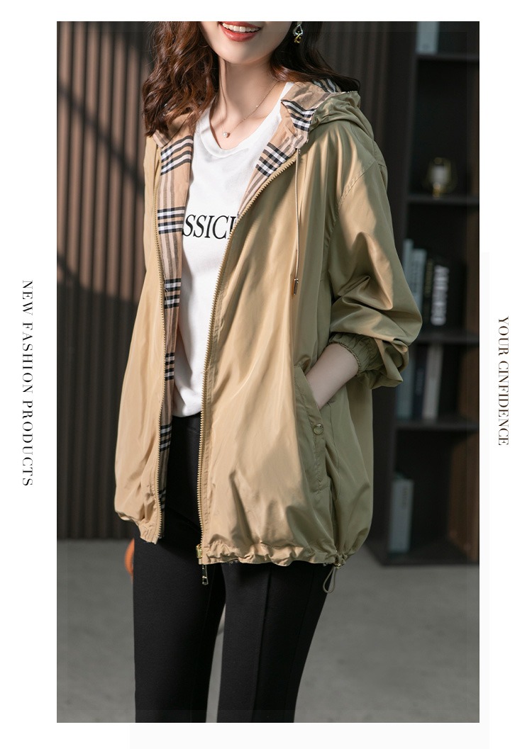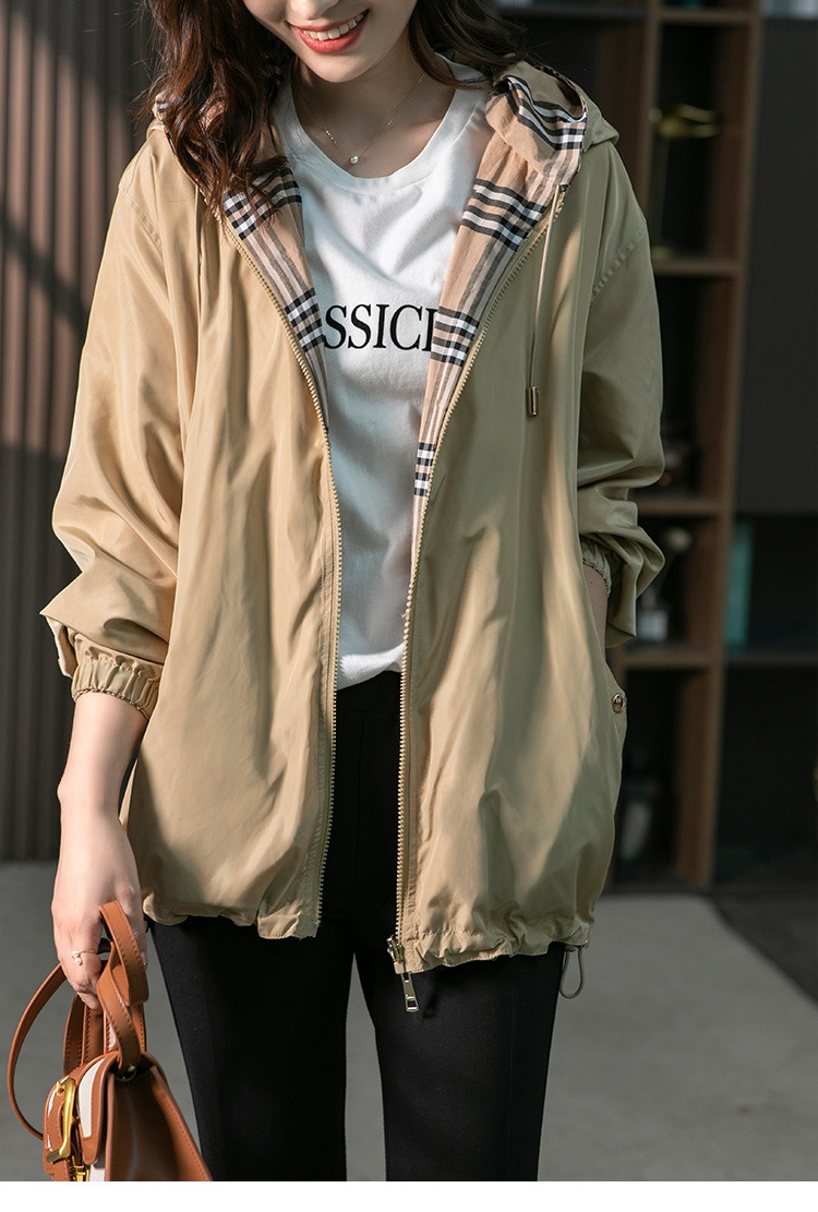 【现货7天】连帽短外套女2023秋装新款韩版宽松休闲夹克时尚百搭抽绳上衣