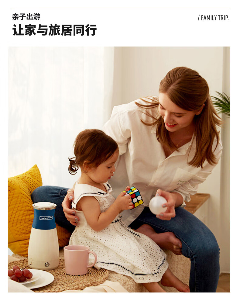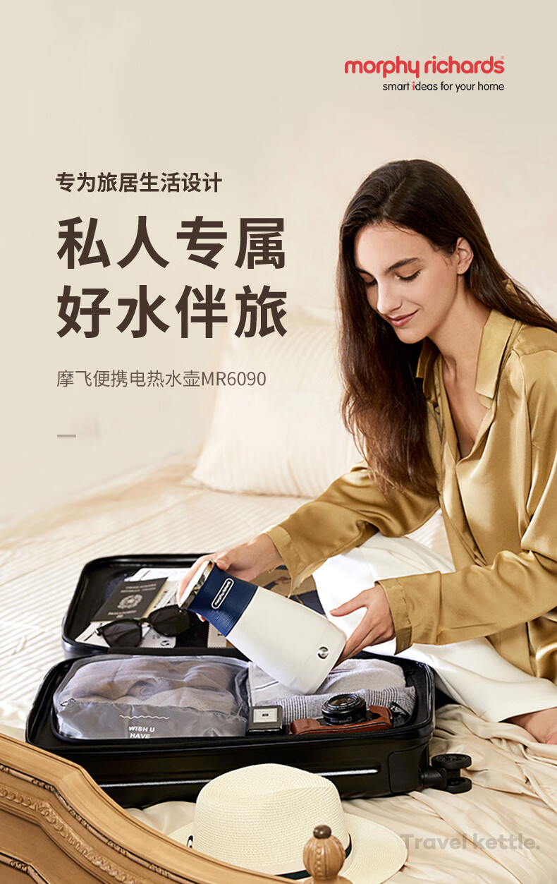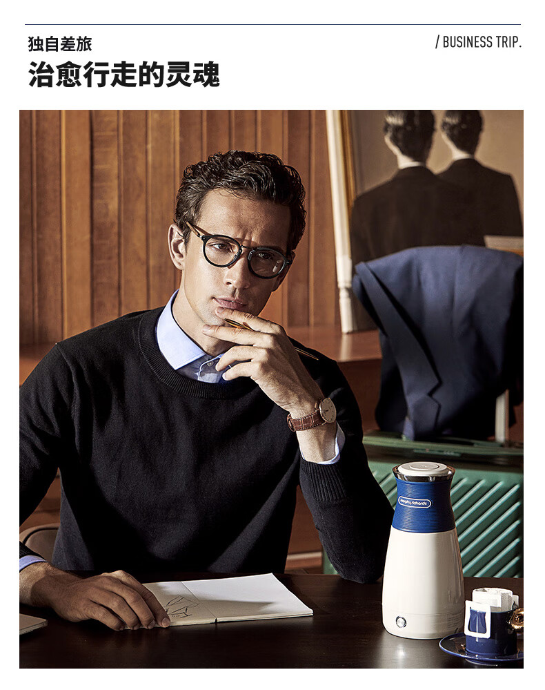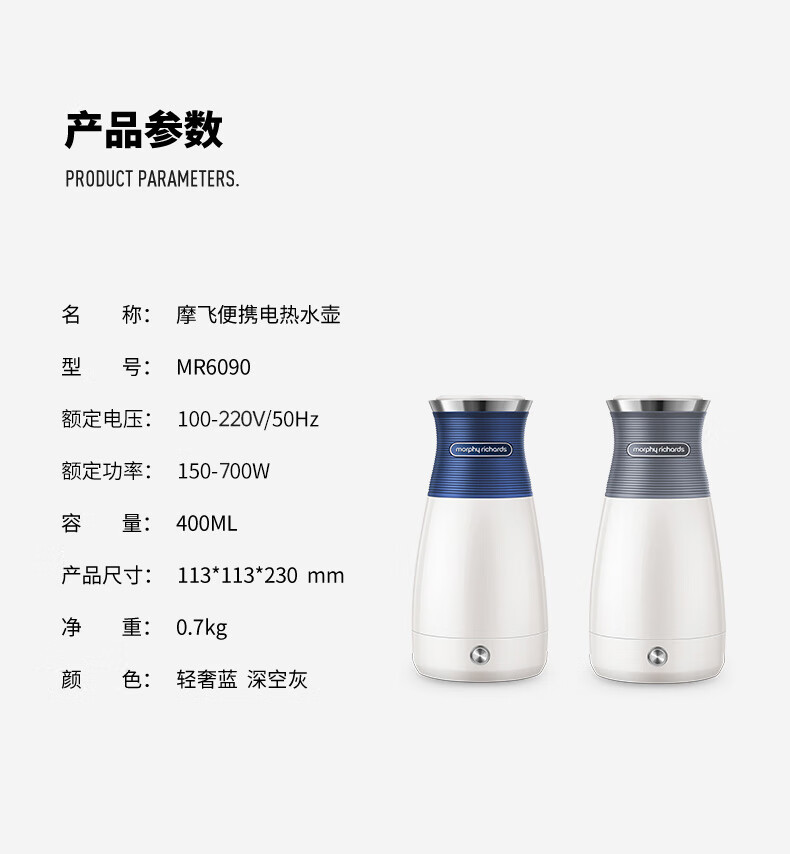 摩飞电器(Morphyrichards)电水壶烧水壶便携式家用旅行电热水壶随行冲奶泡茶办公室养生保温杯MR6090蓝色