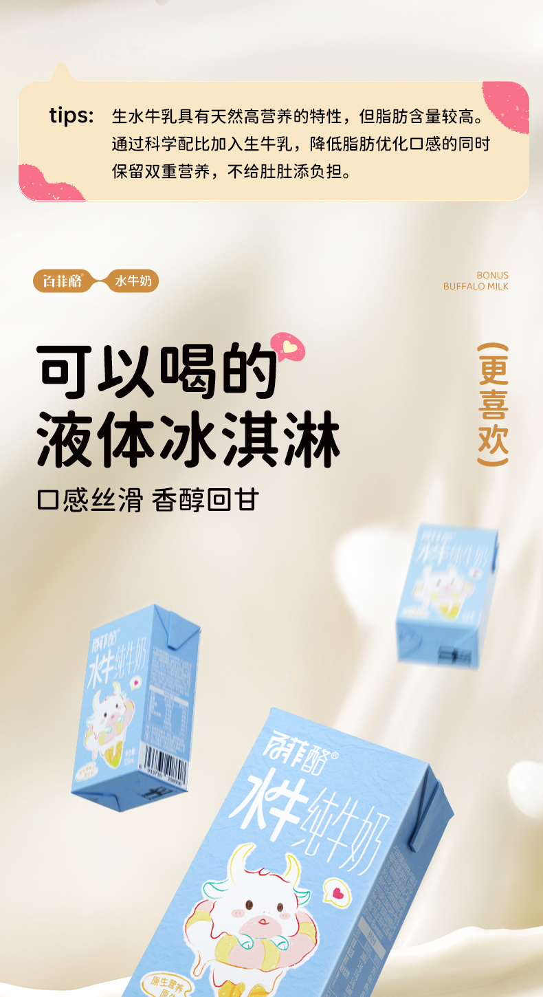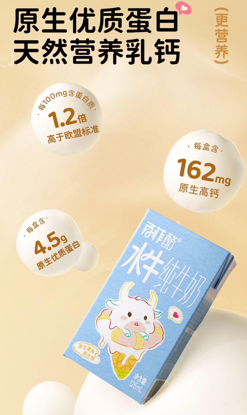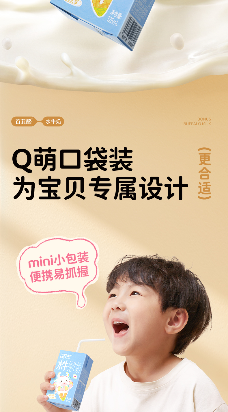 百菲酪3.6g儿童水牛纯牛奶125ml*9盒