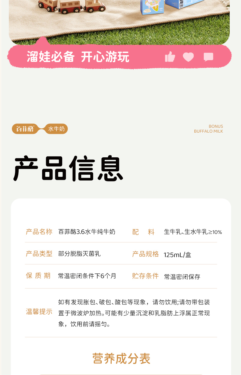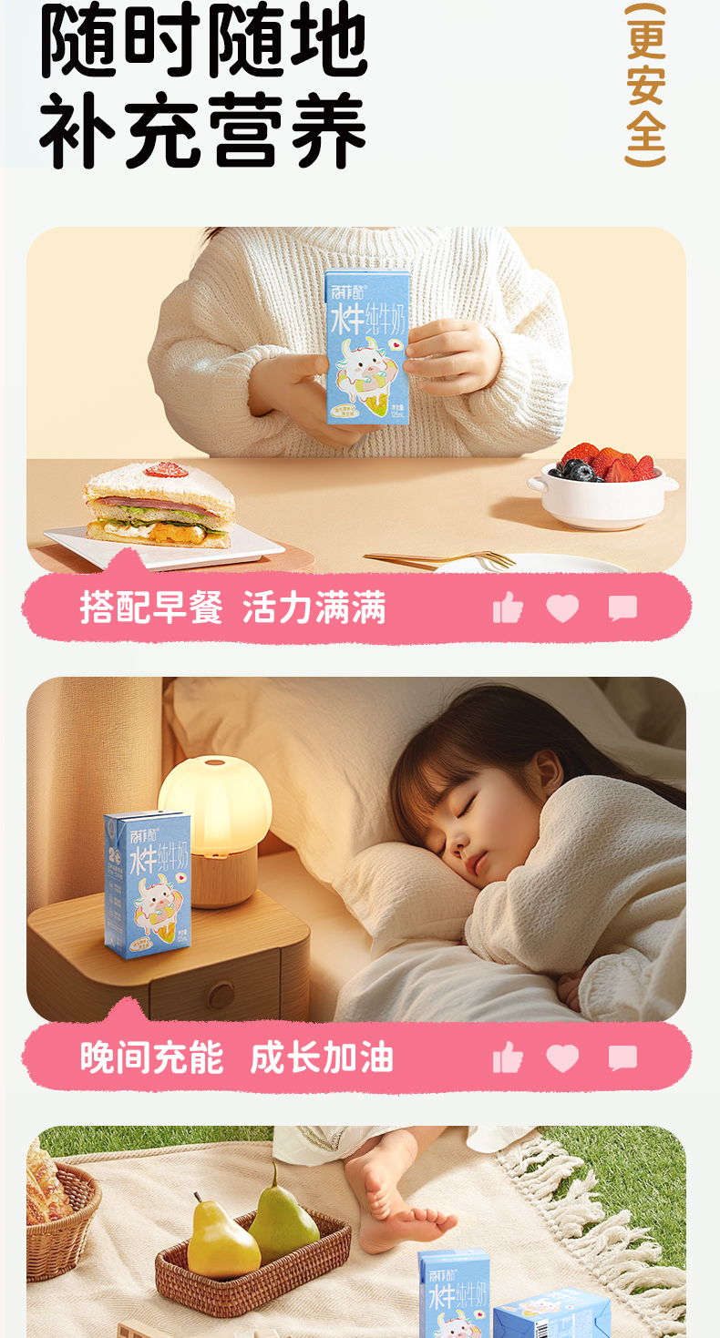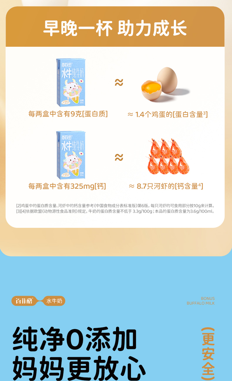 百菲酪3.6g儿童水牛纯牛奶125ml*9盒