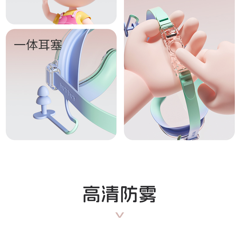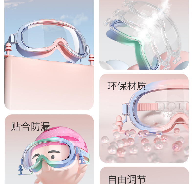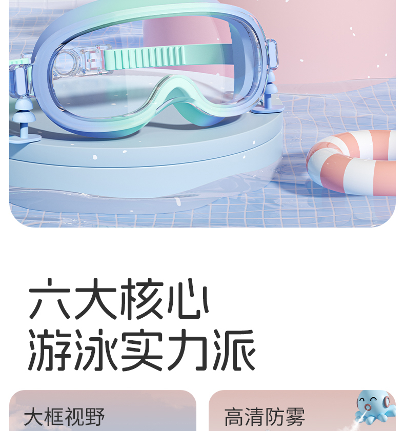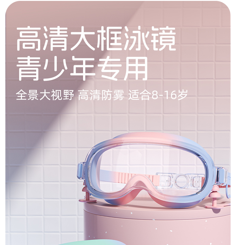 儿童泳镜【YOTTOY】儿童泳镜高清防水防雾青少年大框游泳眼镜女孩男孩专业泳帽套装备