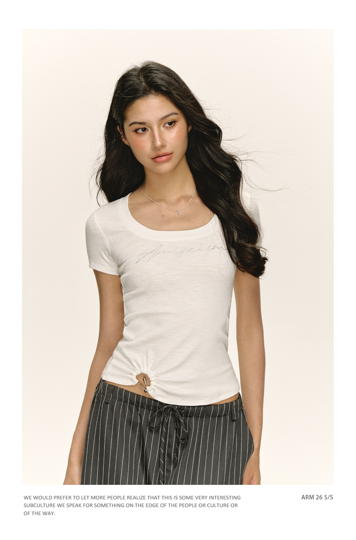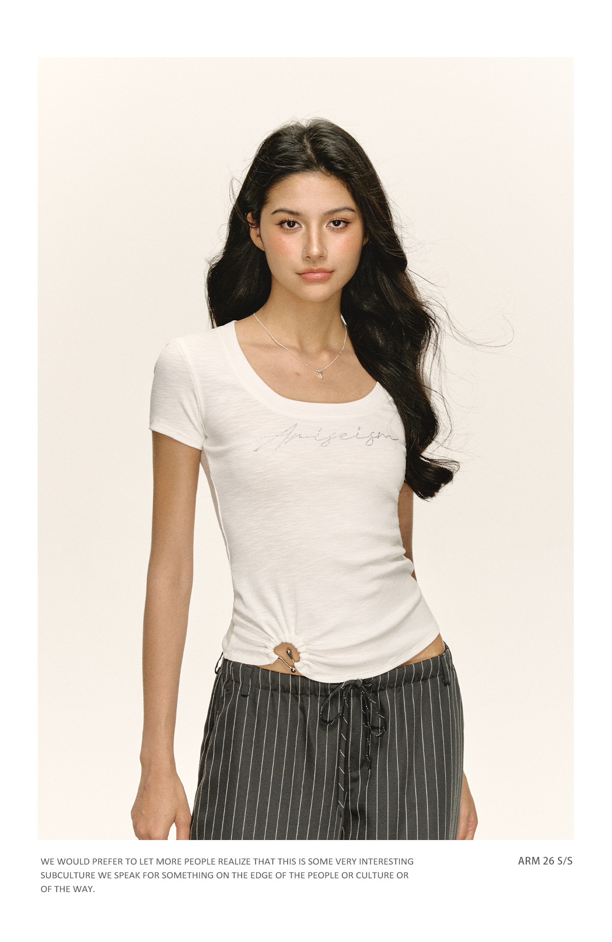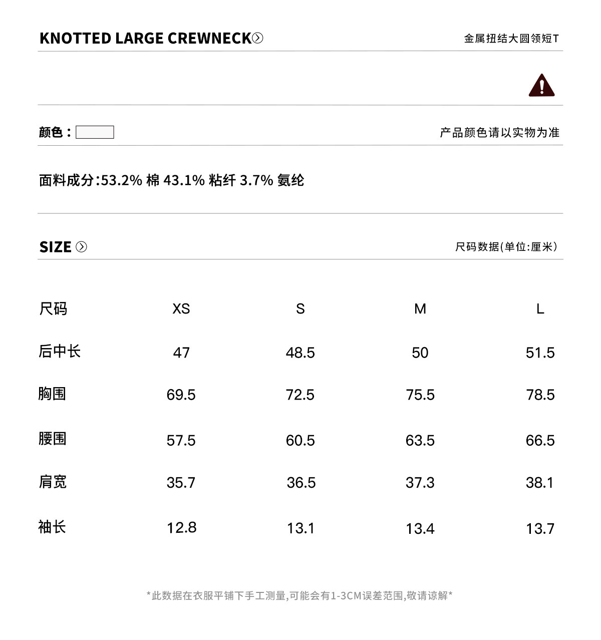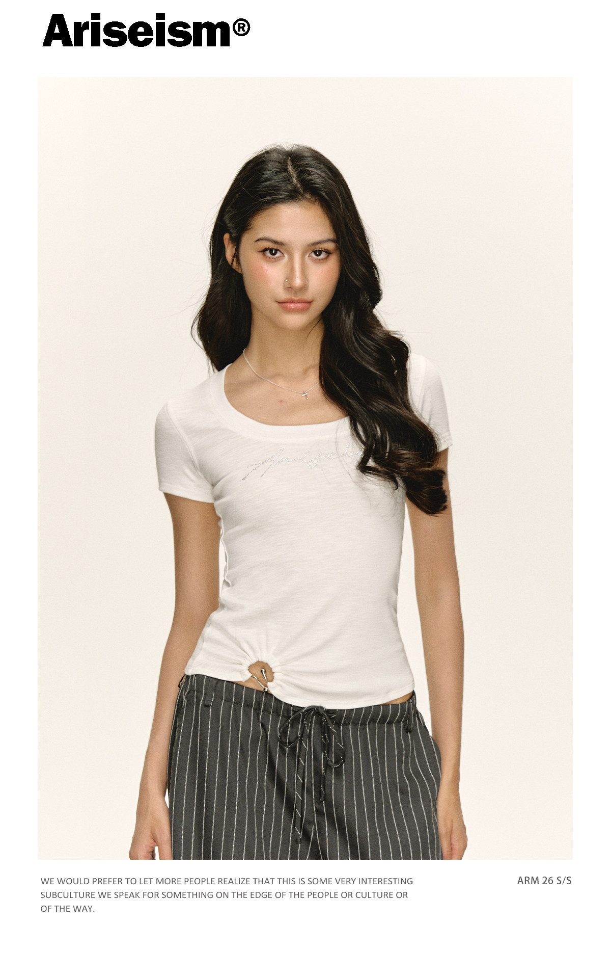 Ariseism 美式复古设计感金属扭结圆领短款短袖T恤女夏季新款上衣