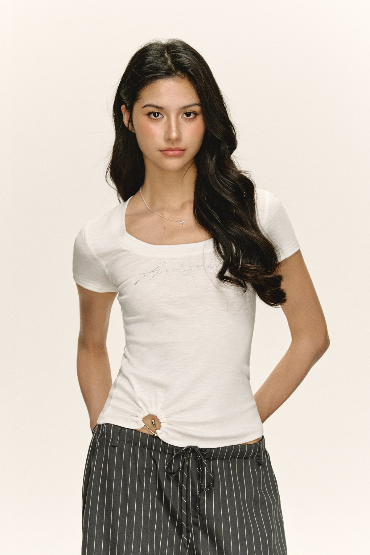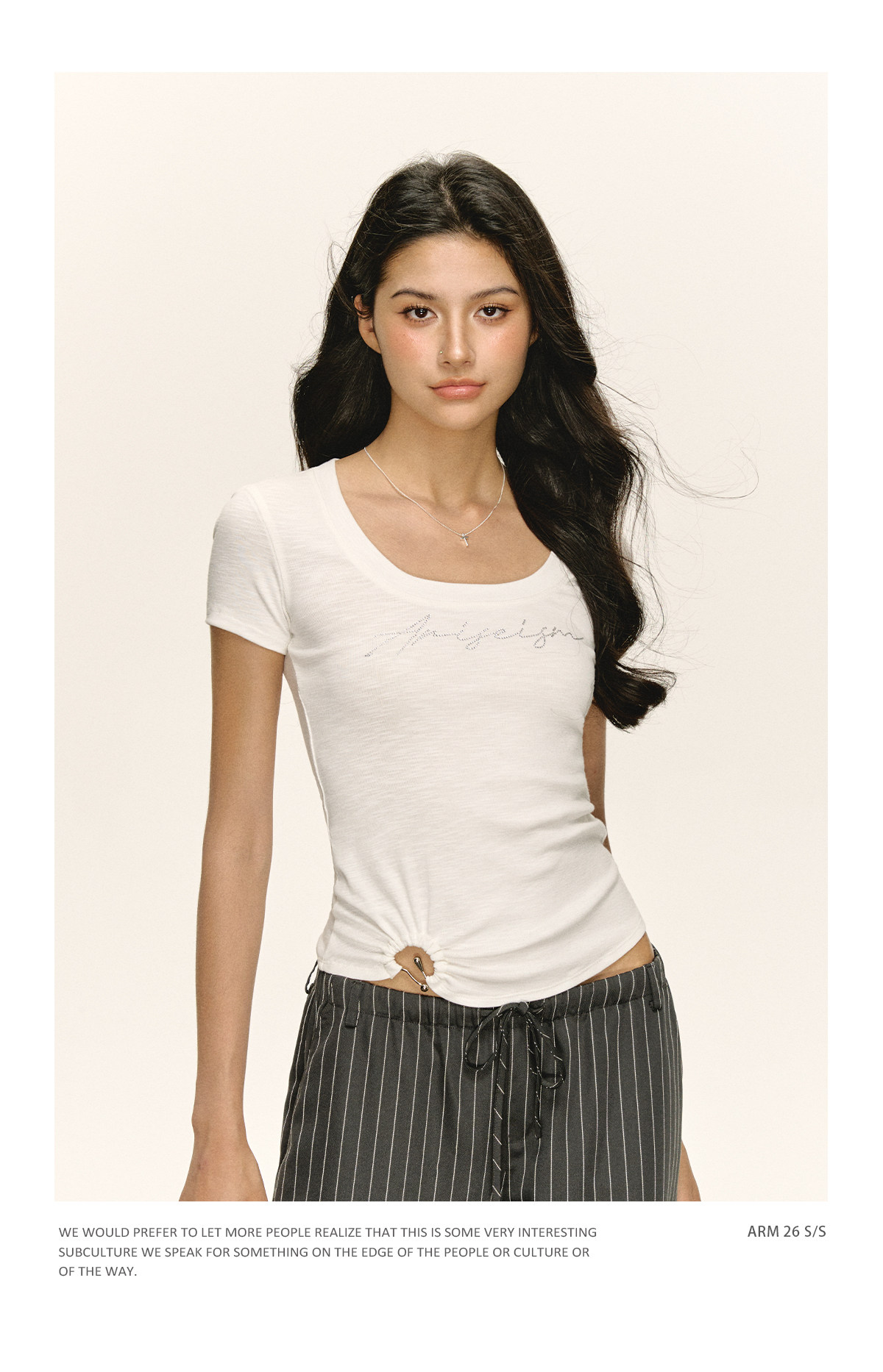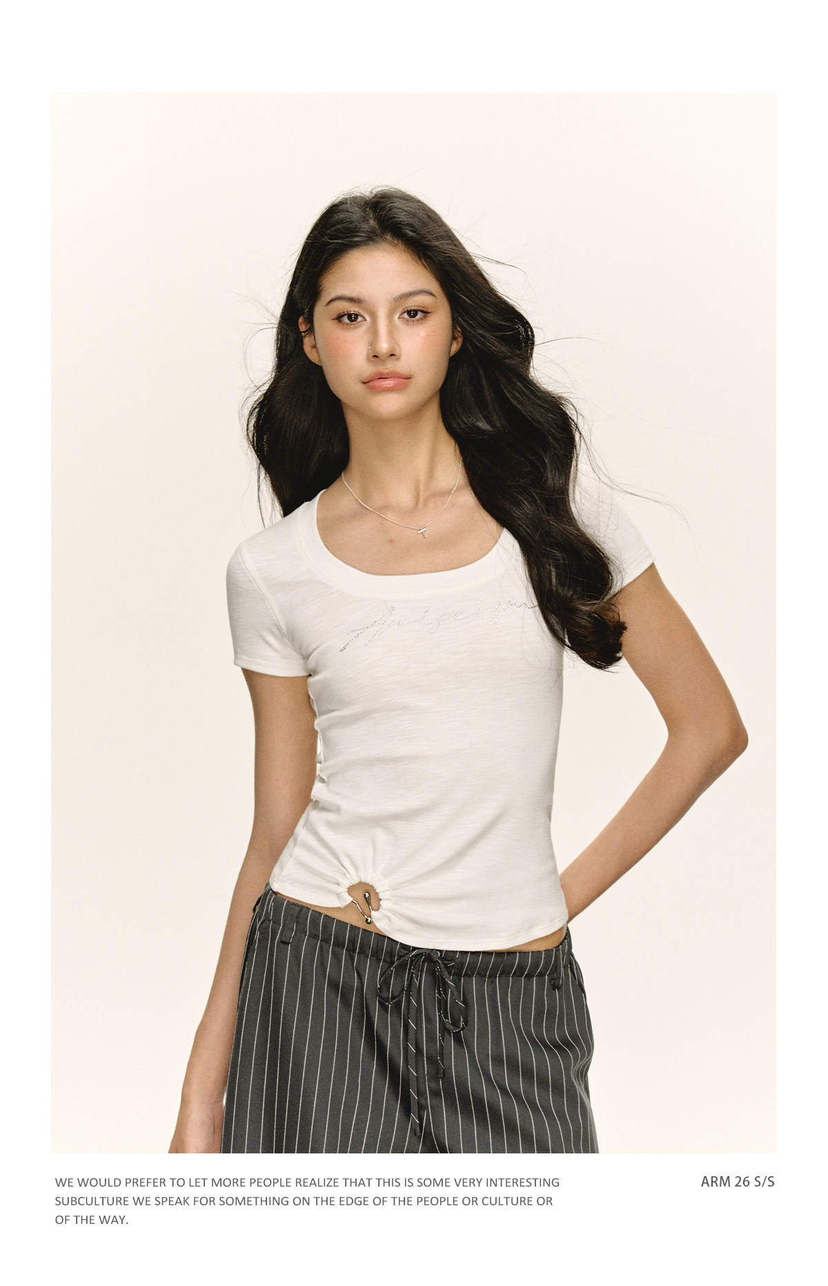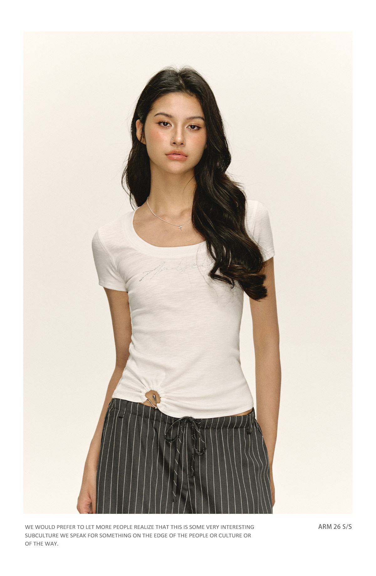Ariseism 美式复古设计感金属扭结圆领短款短袖T恤女夏季新款上衣