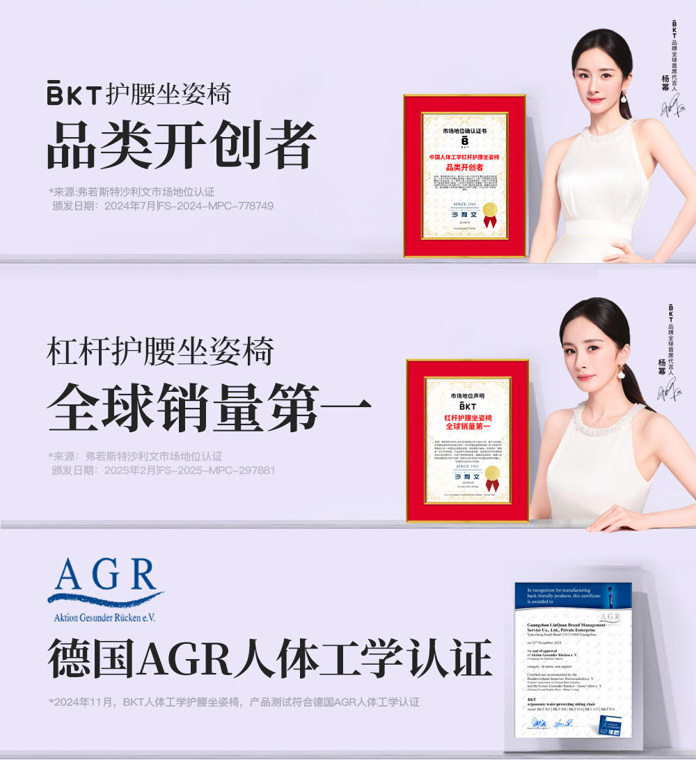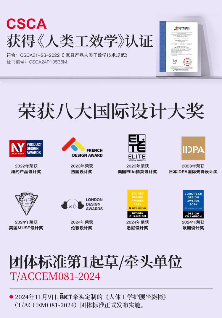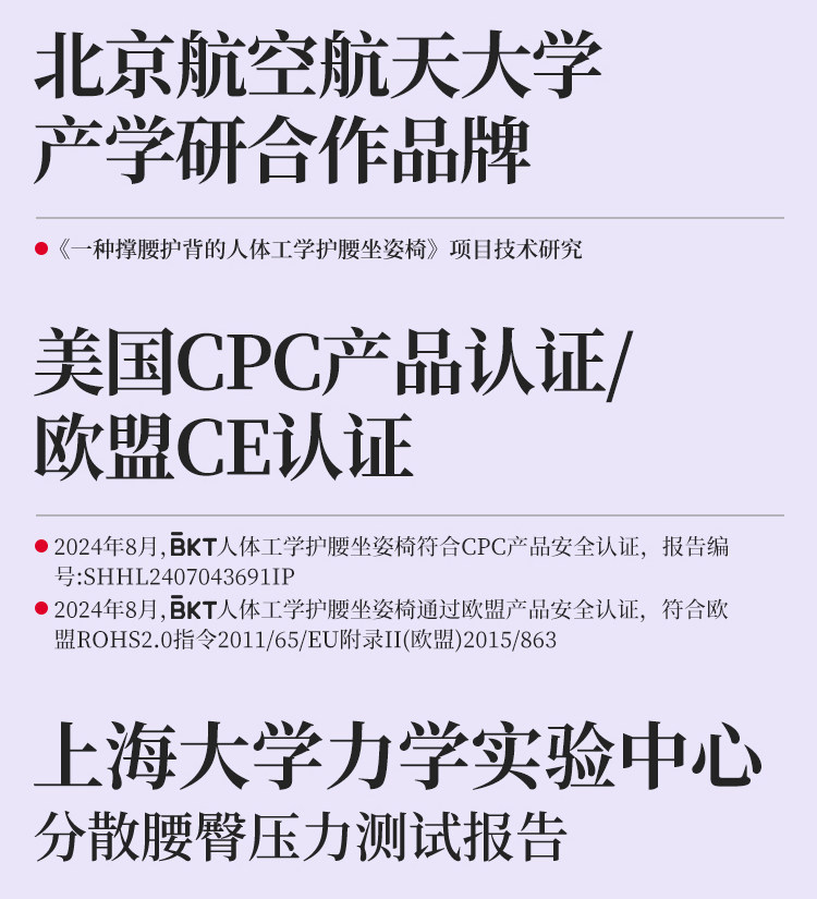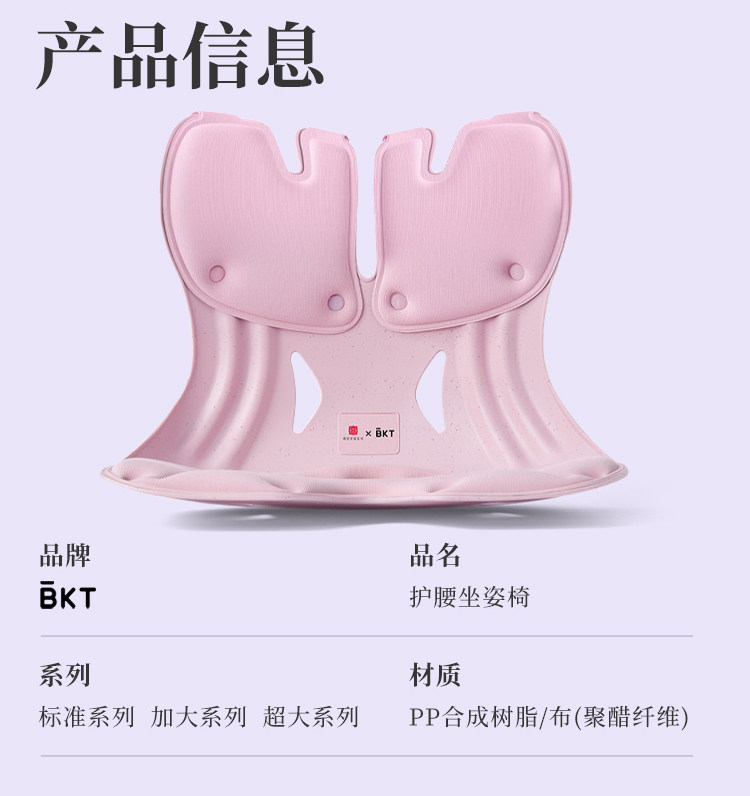 BKT护腰坐垫座椅靠背人体工学腰靠工位久坐神器办公腰部支撑靠垫