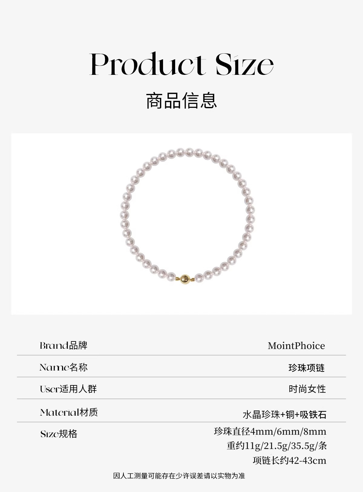 【下单赠同款耳钉】MointPhoice水晶珍珠项链 | 轻奢简约 珍珠光泽细腻 莹润透亮 三款尺寸可选