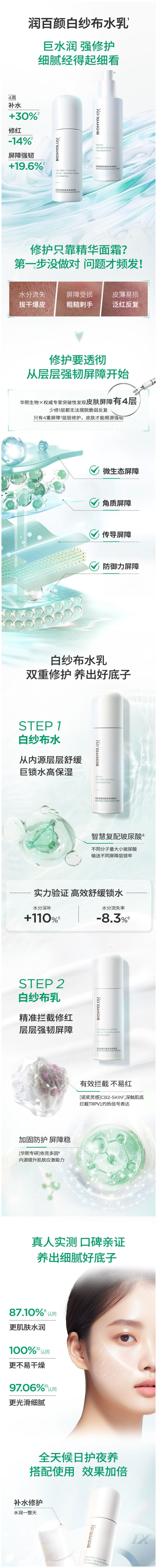 润百颜白纱布乳 屏障修护敏肌补水保湿护肤