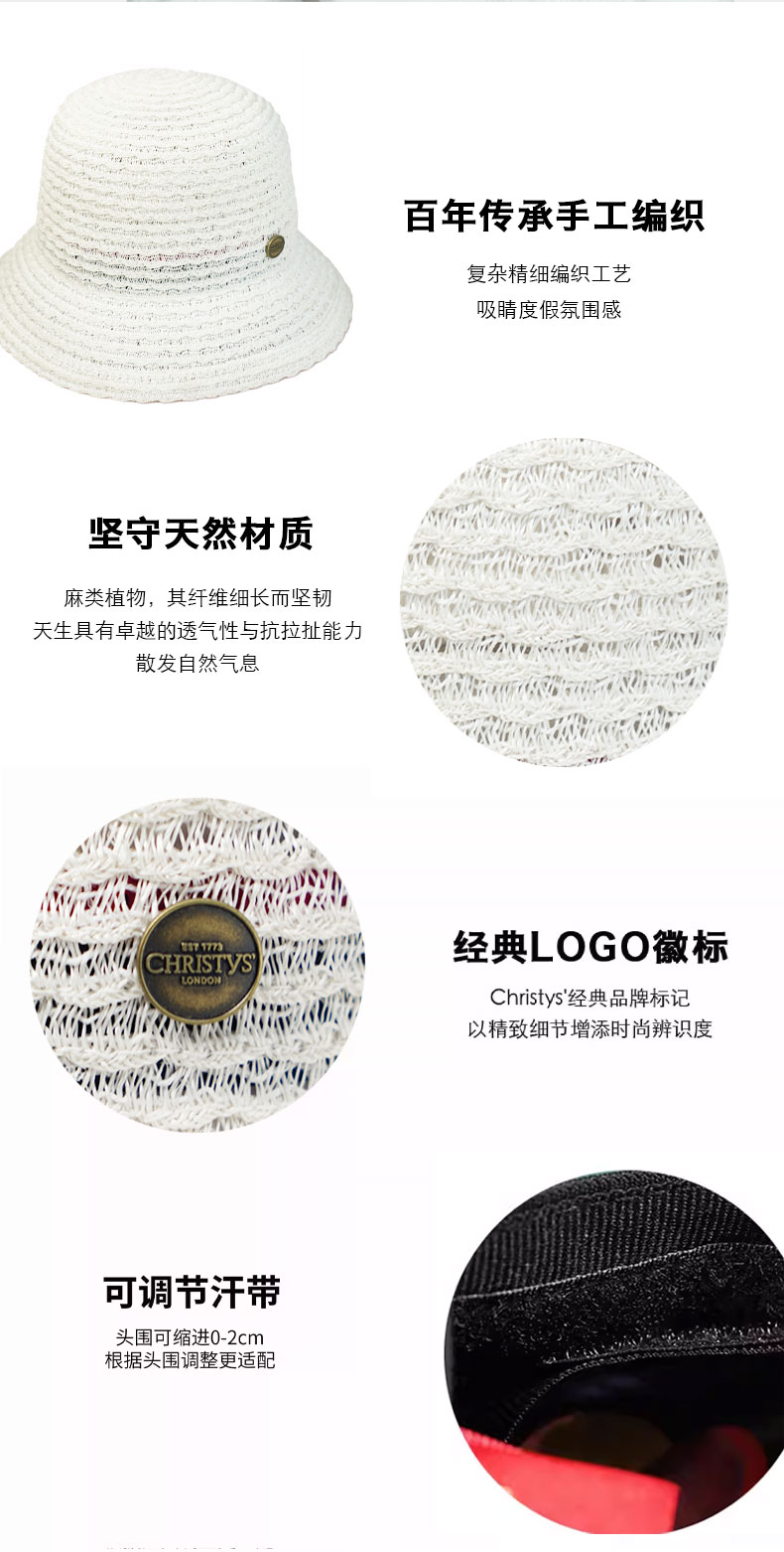 【2026新品】Christys'百年皇室品牌 纯天然麻辫渔夫草帽