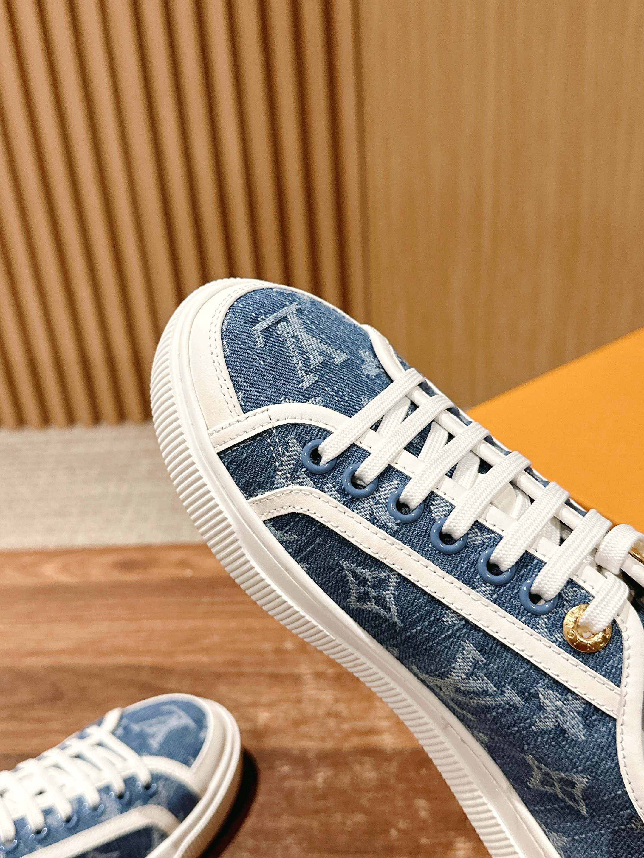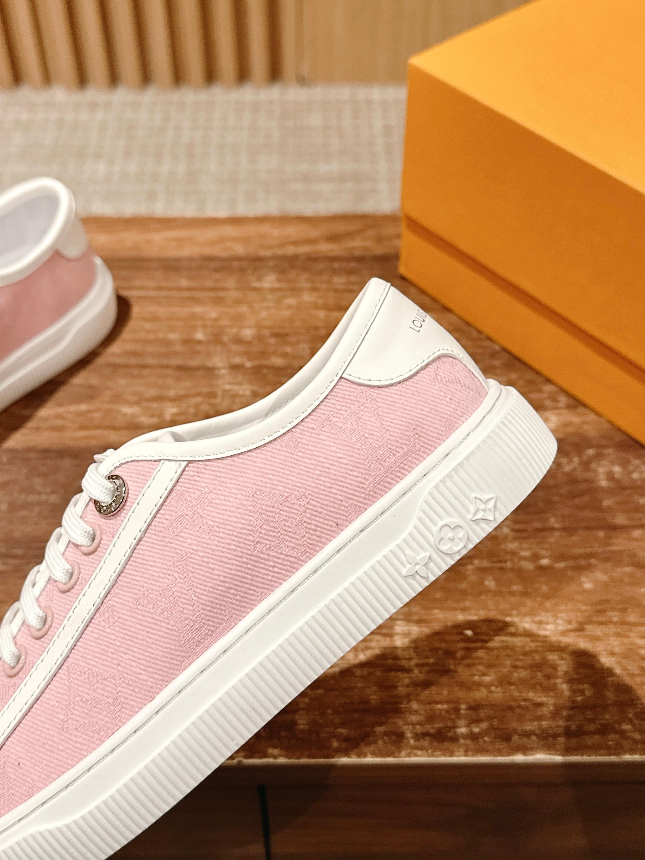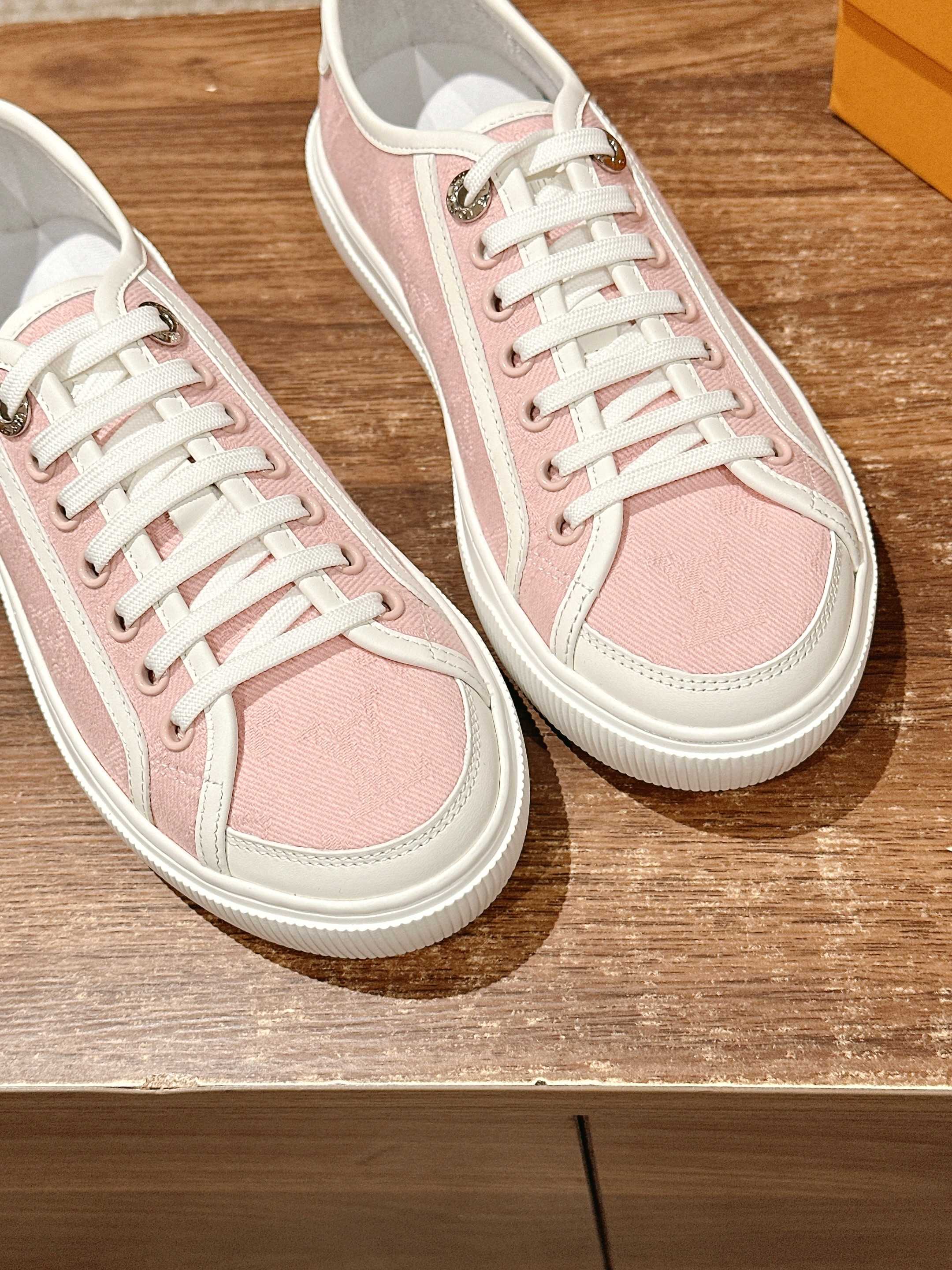 具有青春气息的洋溢气息,上脚非常减龄!上脚舒适轻便!颜色也非常青春!鞋面专属于lv的金色饰品穿插!让整个鞋子就更灵动起来!鞋面特殊的电印logo,具有设计感而且也超级具有辨识度!美观又大方!!