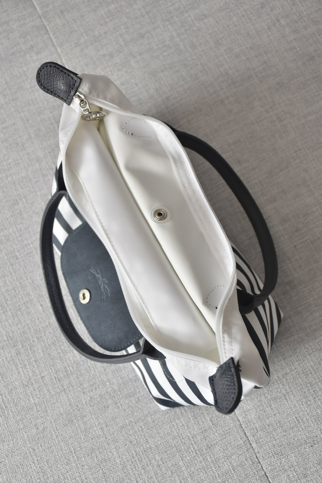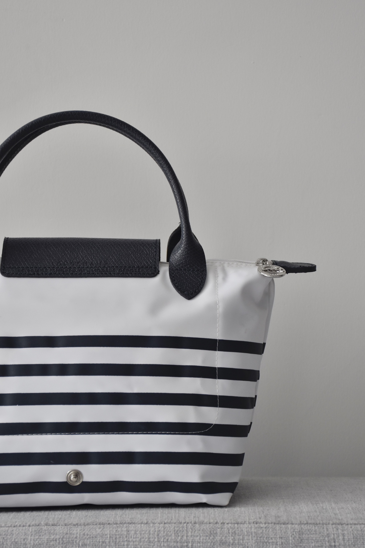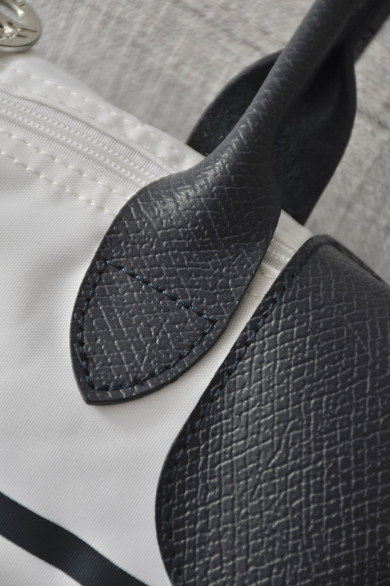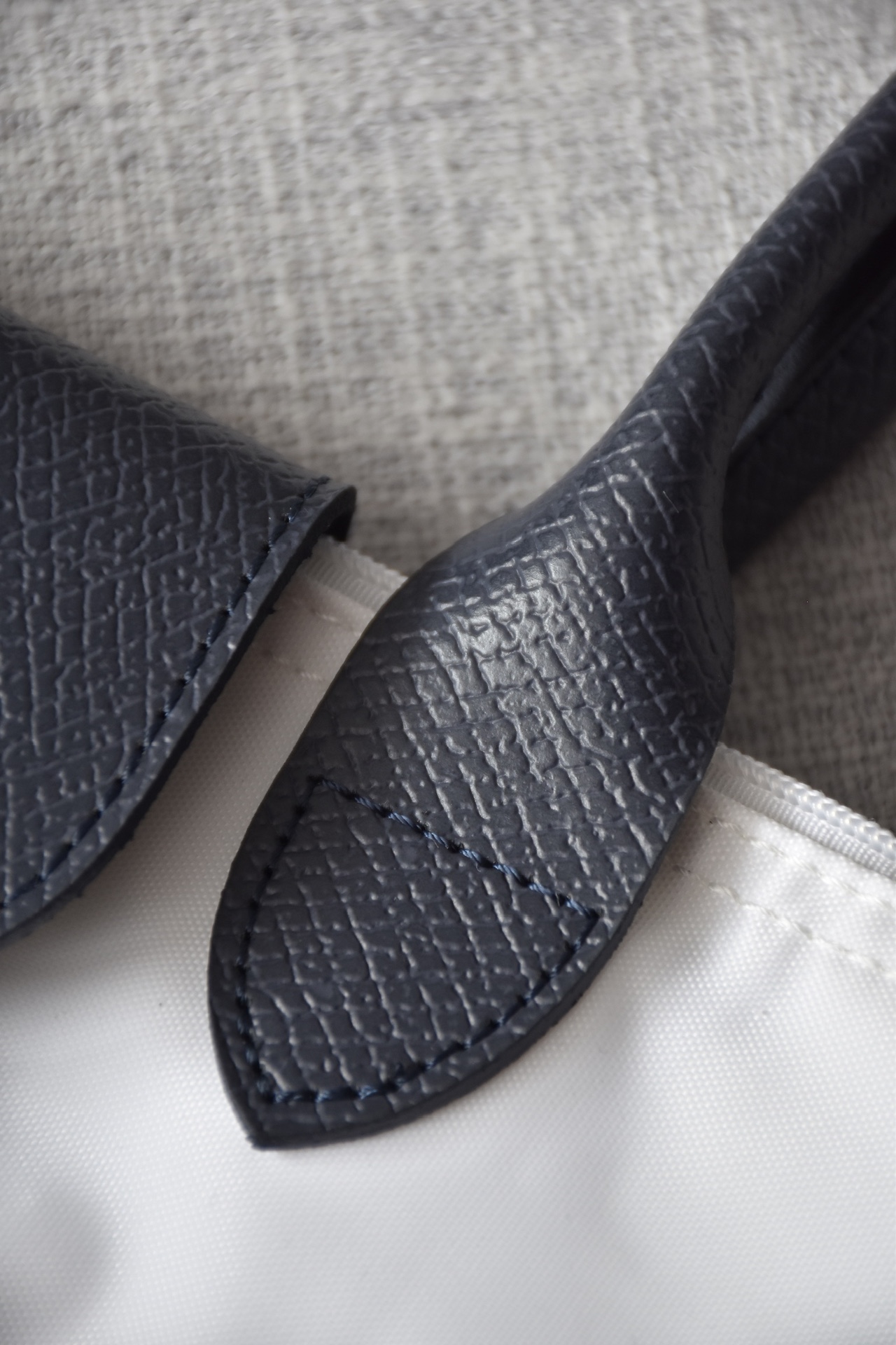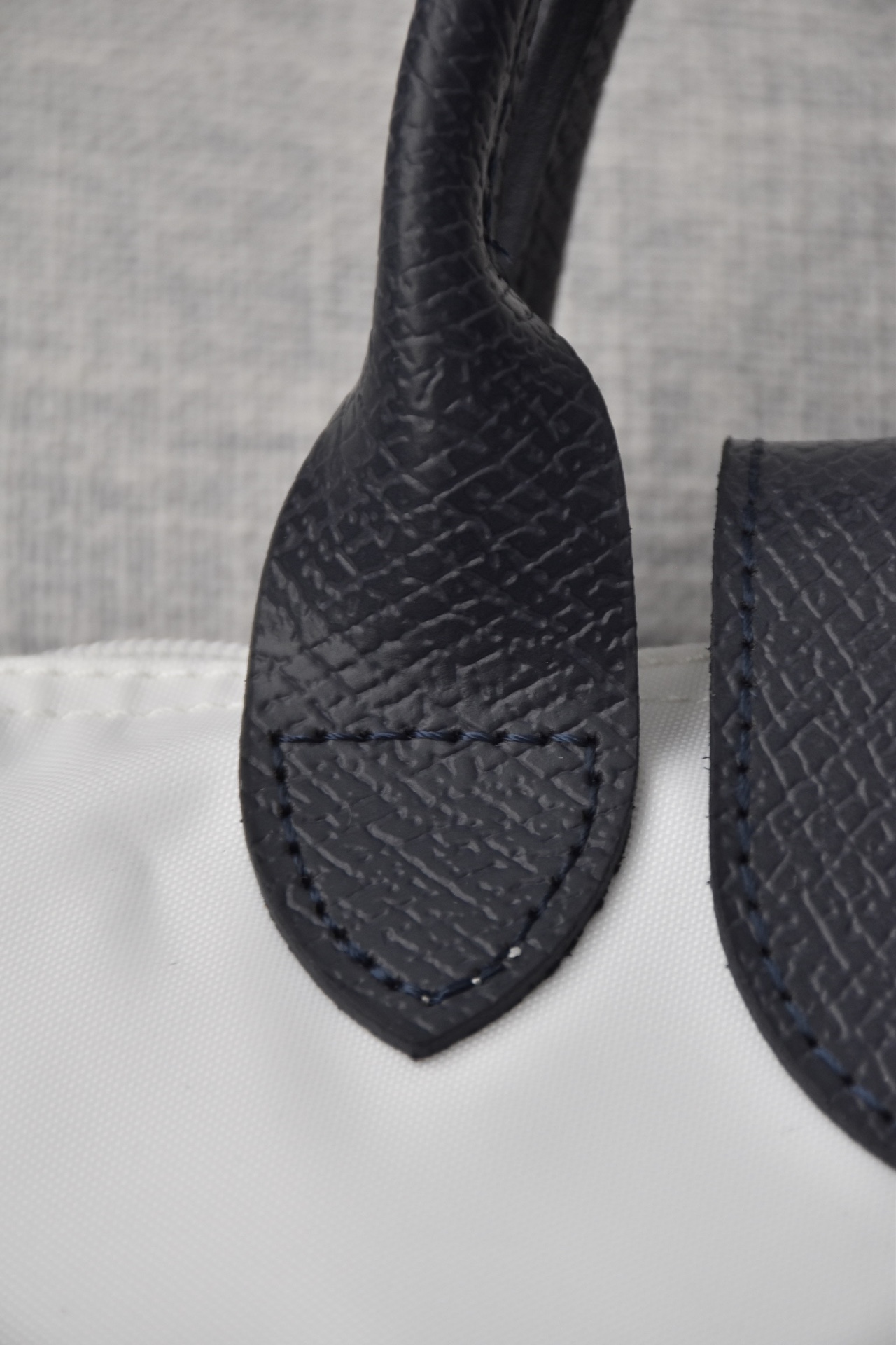 斜纹尼龙布内里添加了硅油成分的原版尼龙布,立体有型,表面细腻有光泽,这种手感 挺阔度都是完全区别于之前的任何一款珑骧!关键的一点就是拿在手里有质感但是依然轻便,这不是随便能增重的,所有人都知道珑骧是最轻便的购物袋,它的重量必须要是实打实的面料叠加!成本真的高
