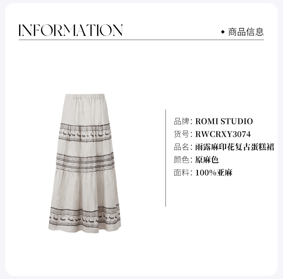 ROMI STUDIO“邂逅夏日”雨露麻小鹿印花度假风半身裙 RWCRXY3074