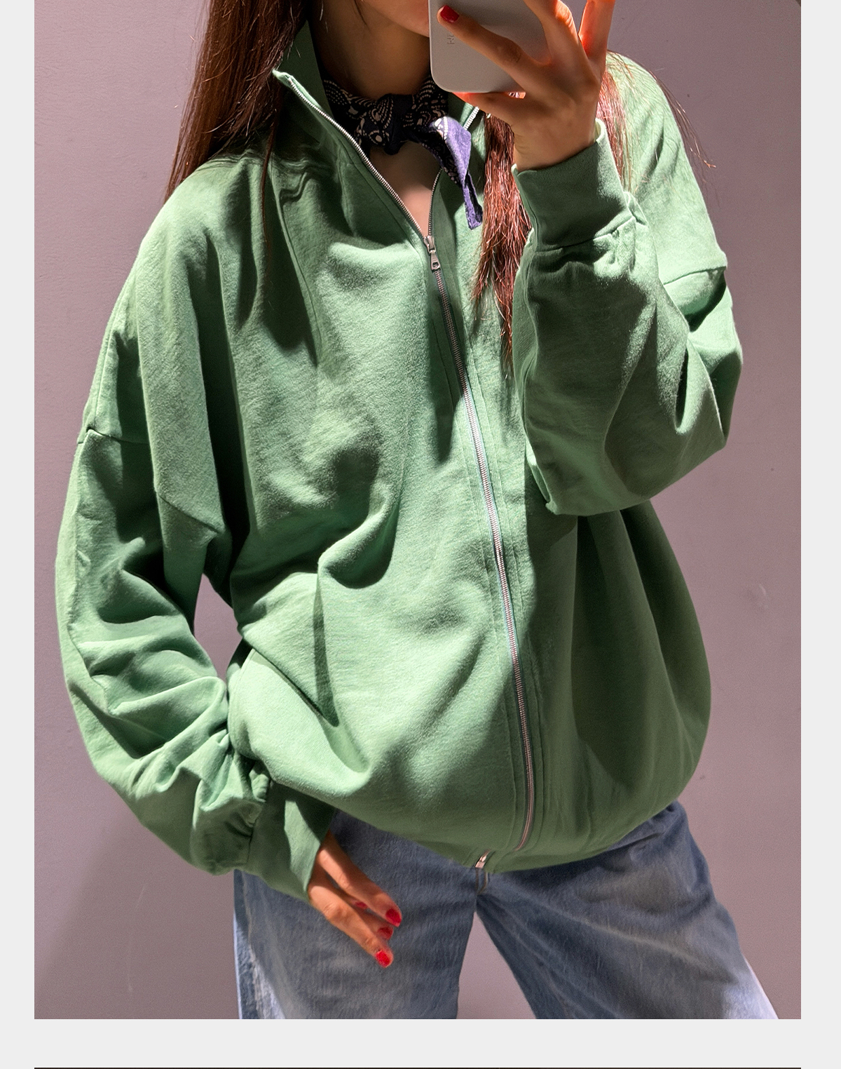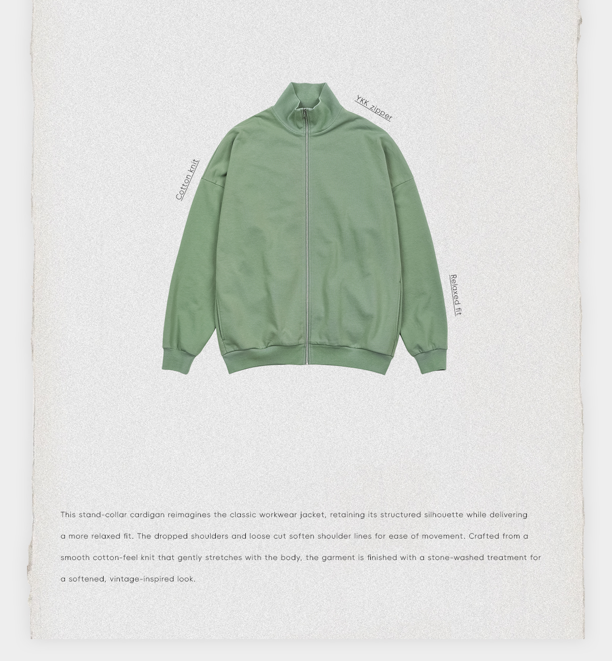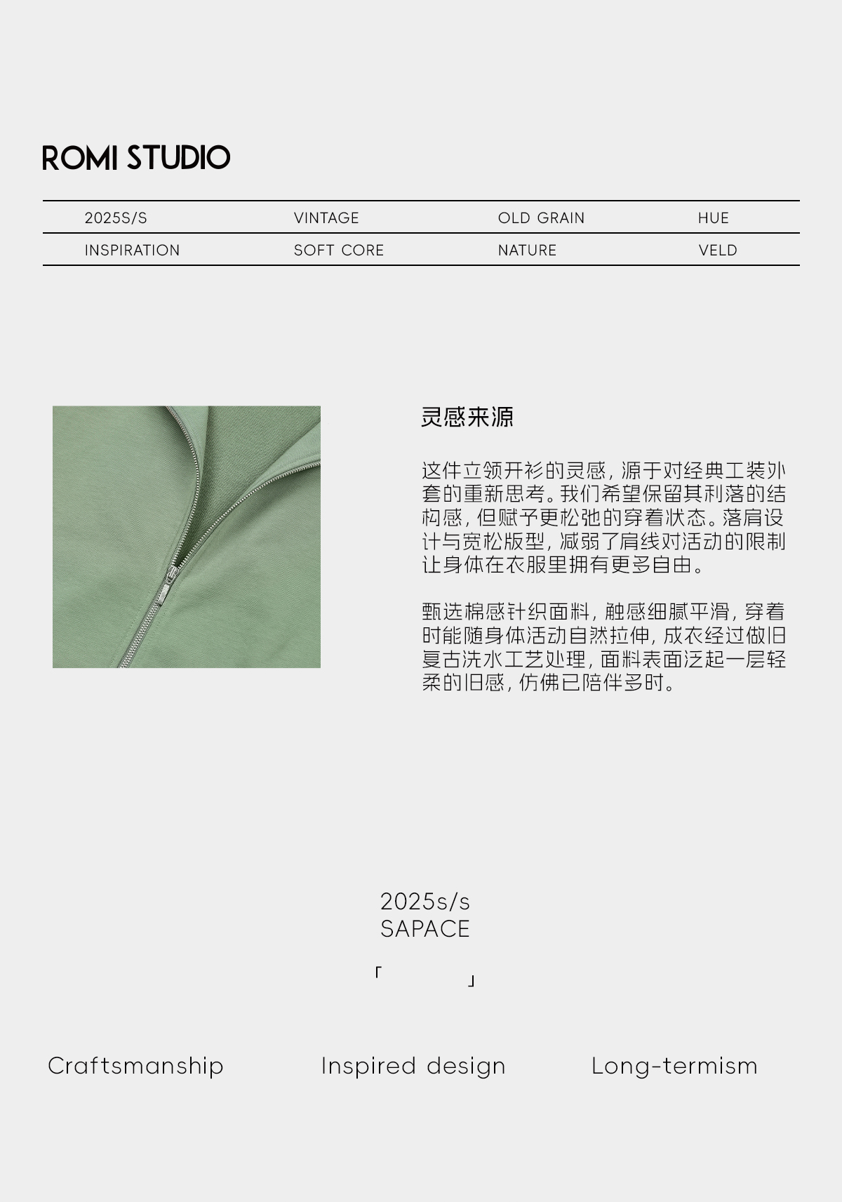 ROMI STUDIO“松弛复古”棉感立领洗水落肩针织短外套 RWCSWY7267