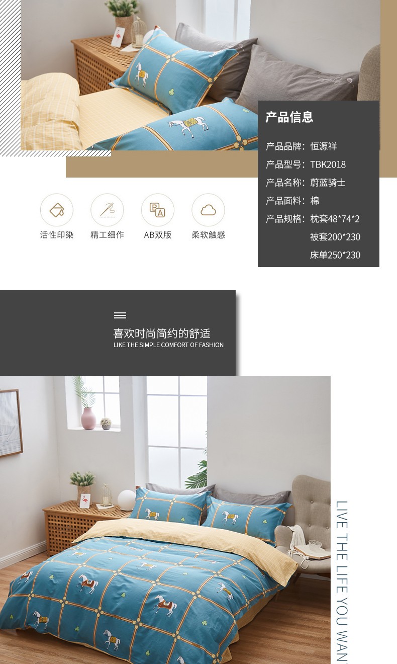 恒源祥礼业TBK2018蔚蓝骑士全棉四件套 蔚蓝骑士 200*230cm