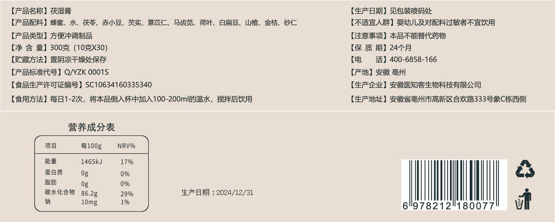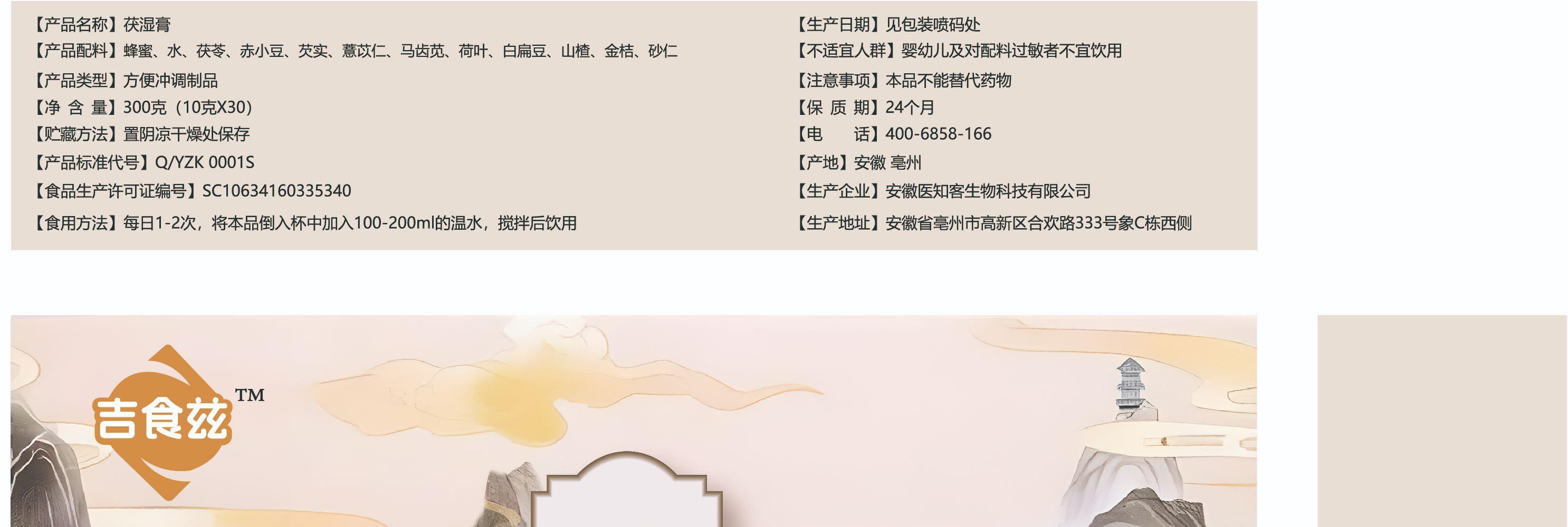 【正品保障】吉食兹茯湿膏茯苓膏薏仁伏湿膏真材实料方便冲饮10g*30
