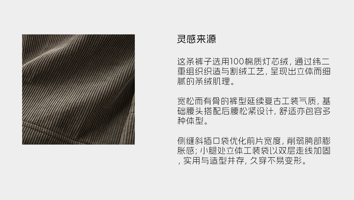 ROMI STUDIO"温暖已至"灯芯绒复古肌理感宽松工装裤 RWCAX66364