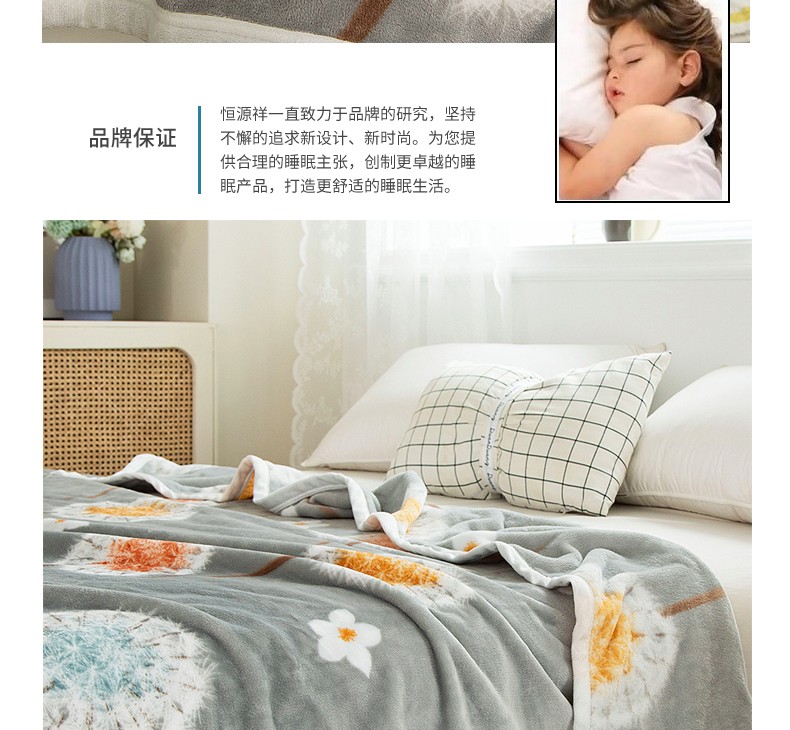 恒源祥(HYX) 恒源祥礼业TLS1046珊瑚绒毯法兰绒毯子蒲公英绒毯 蒲公英 180*200