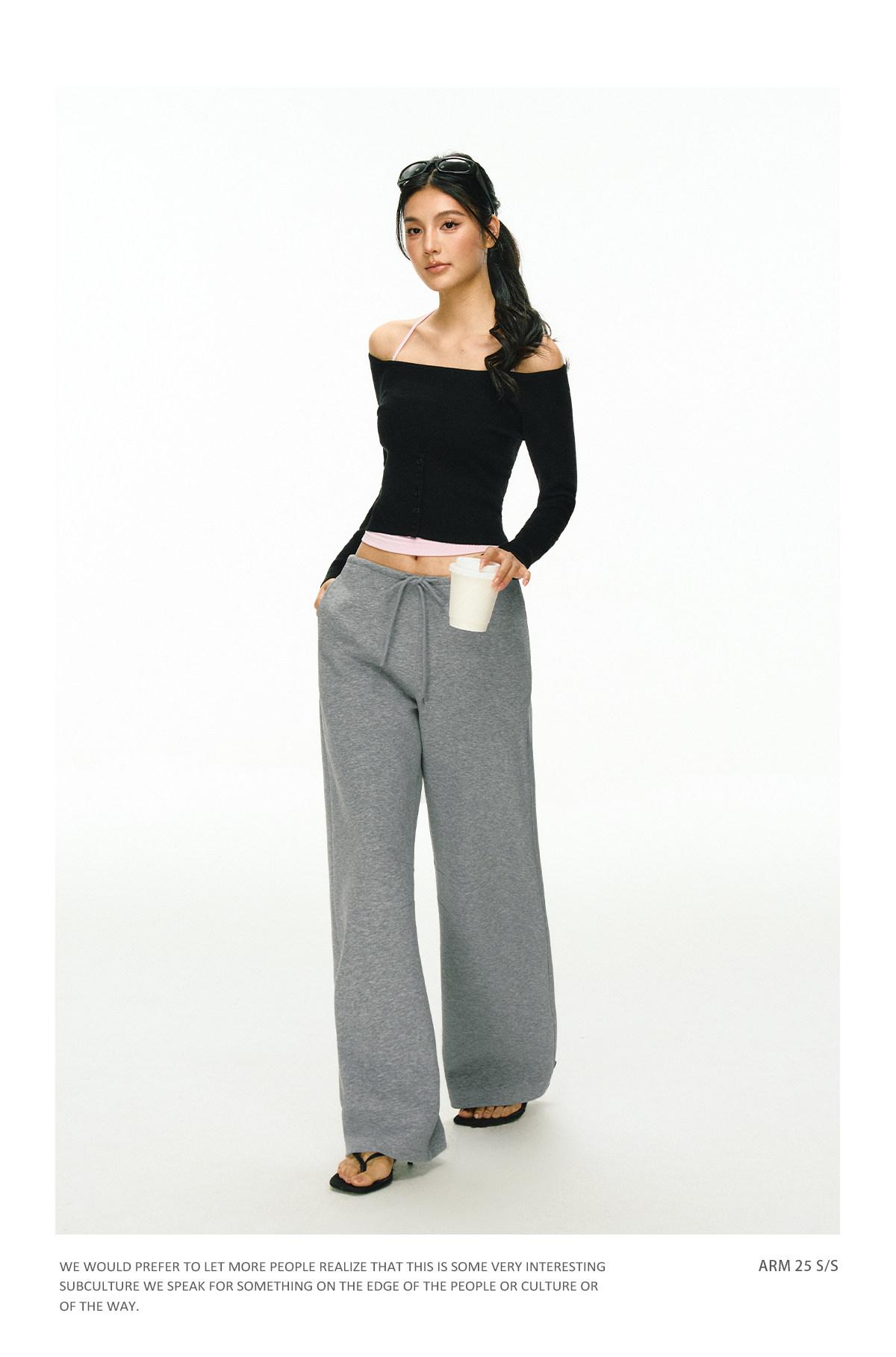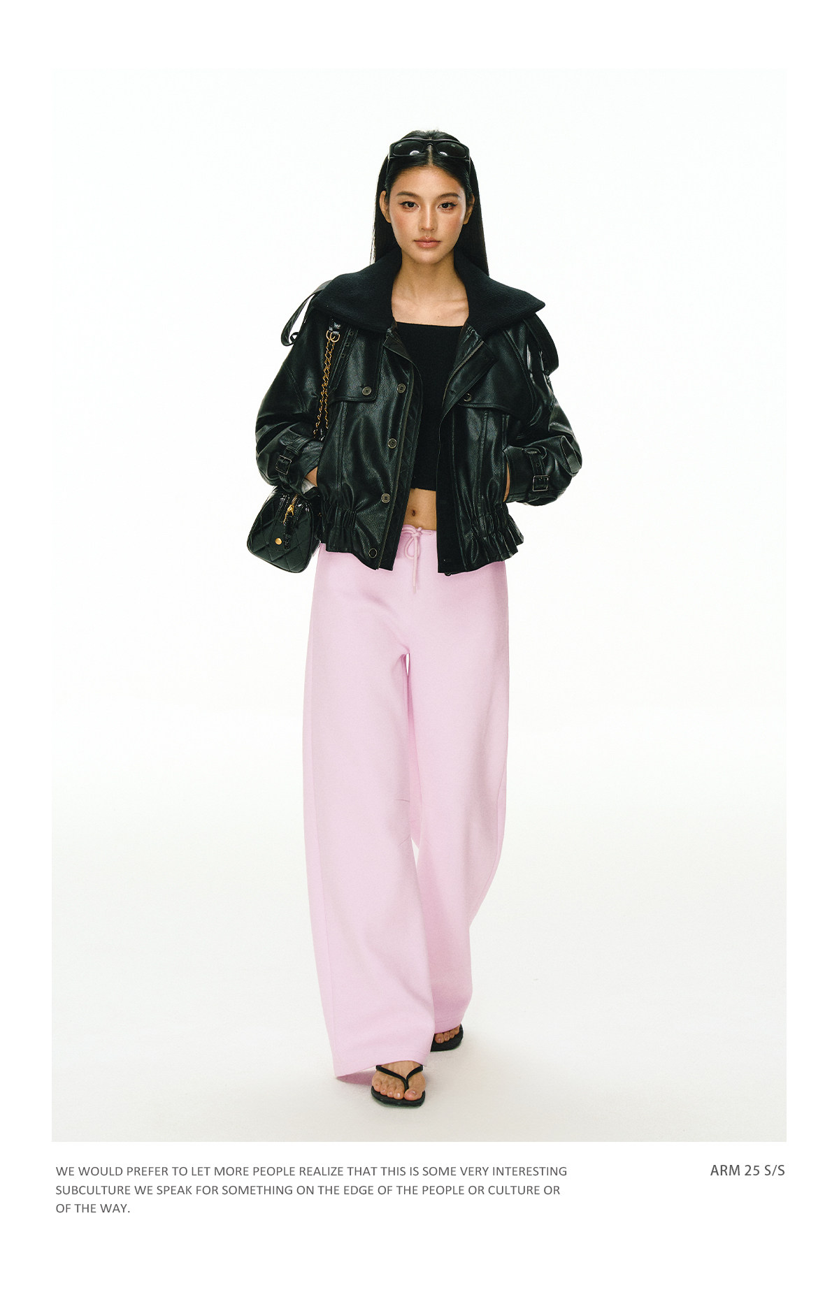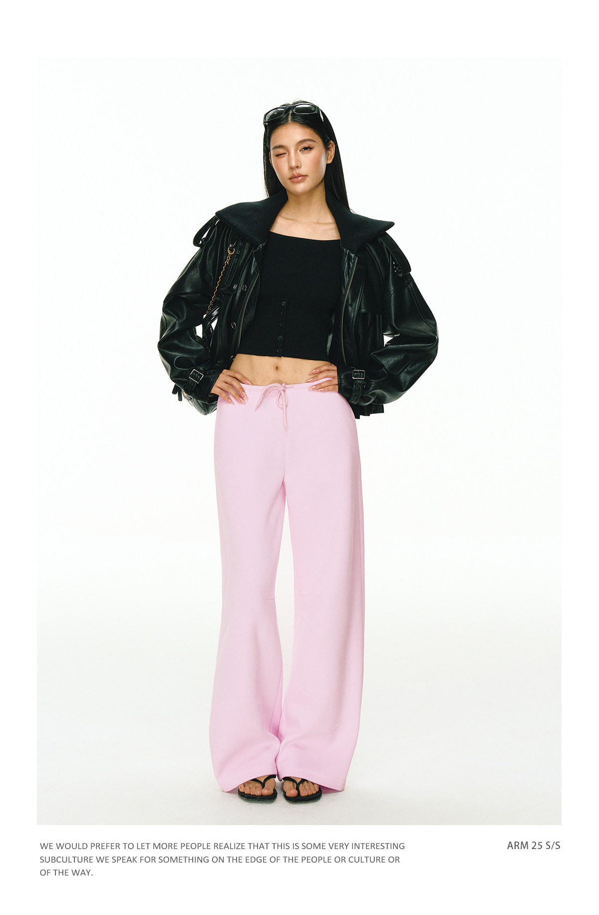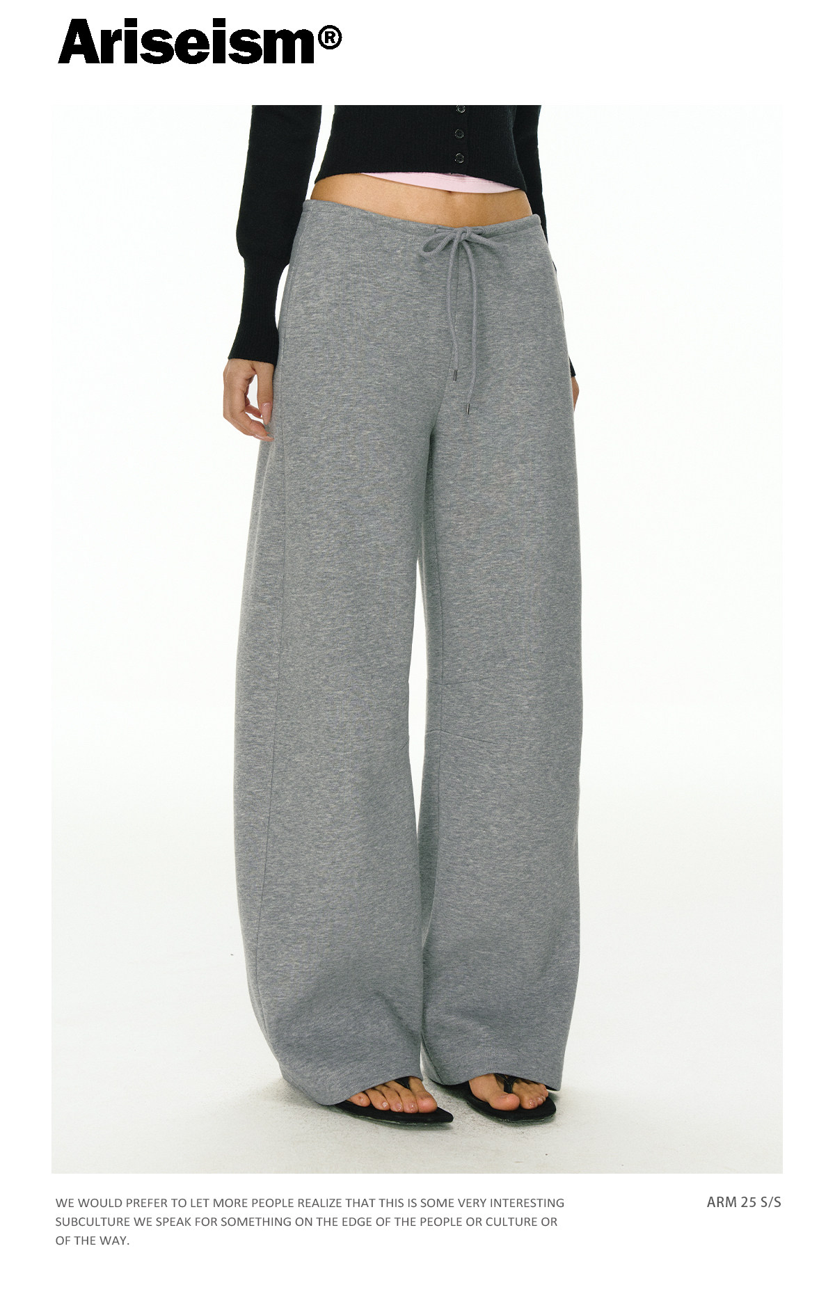 Ariseism 松弛感抽绳腰头高腰阔腿弯刀卫裤女冬季新款休闲长裤子