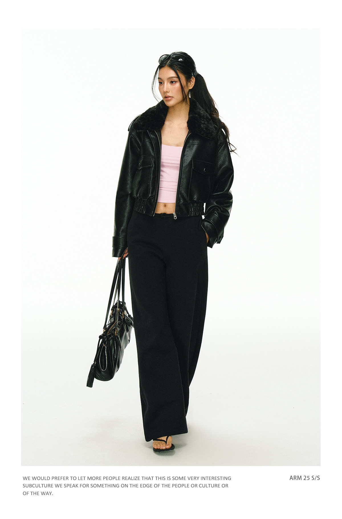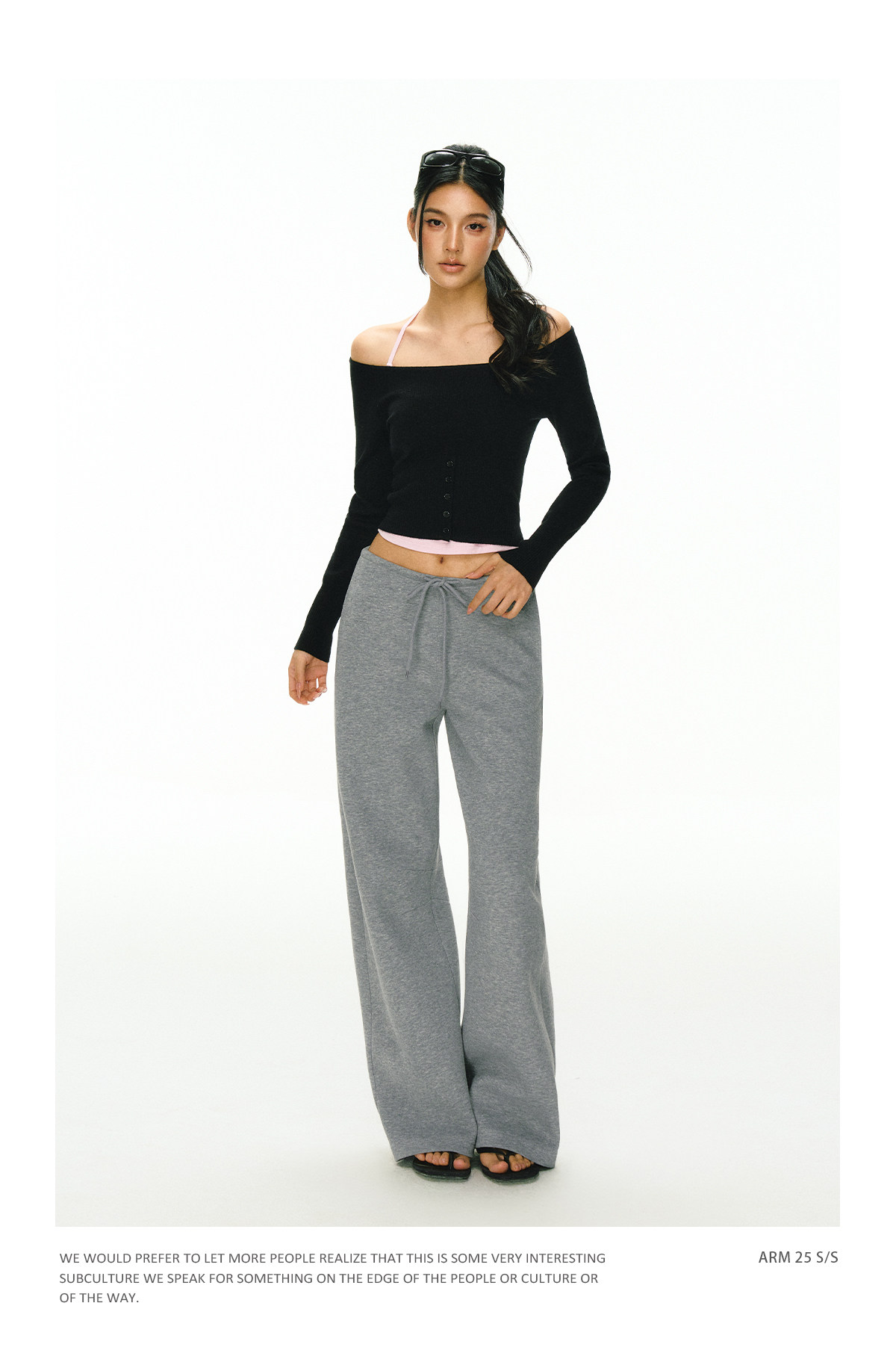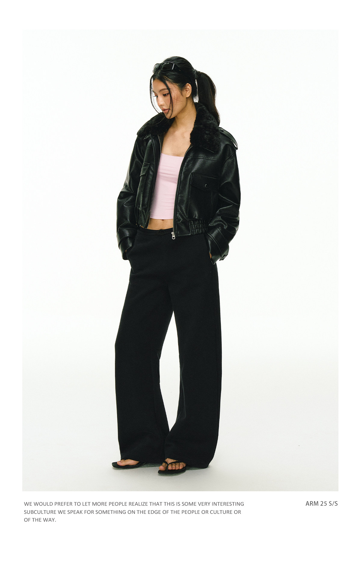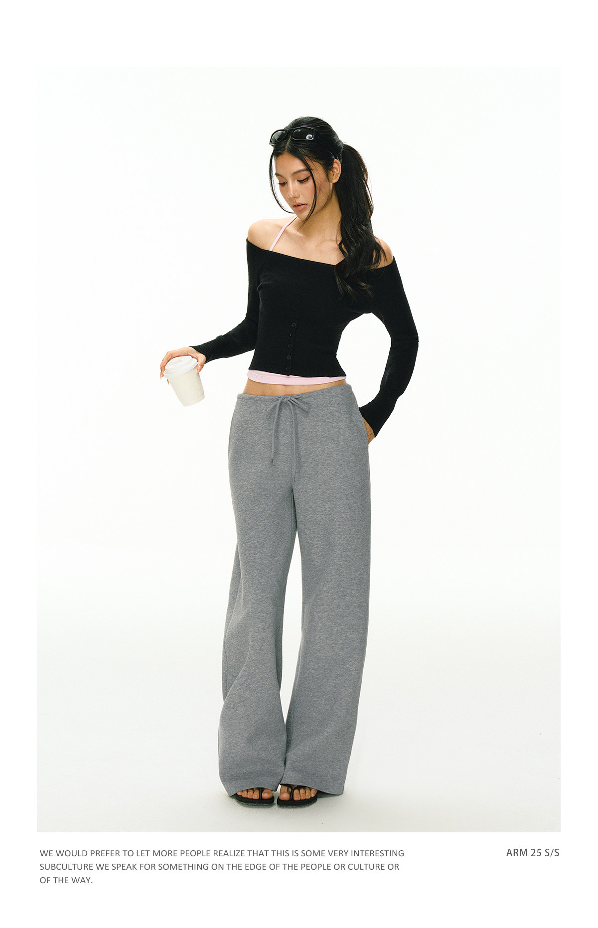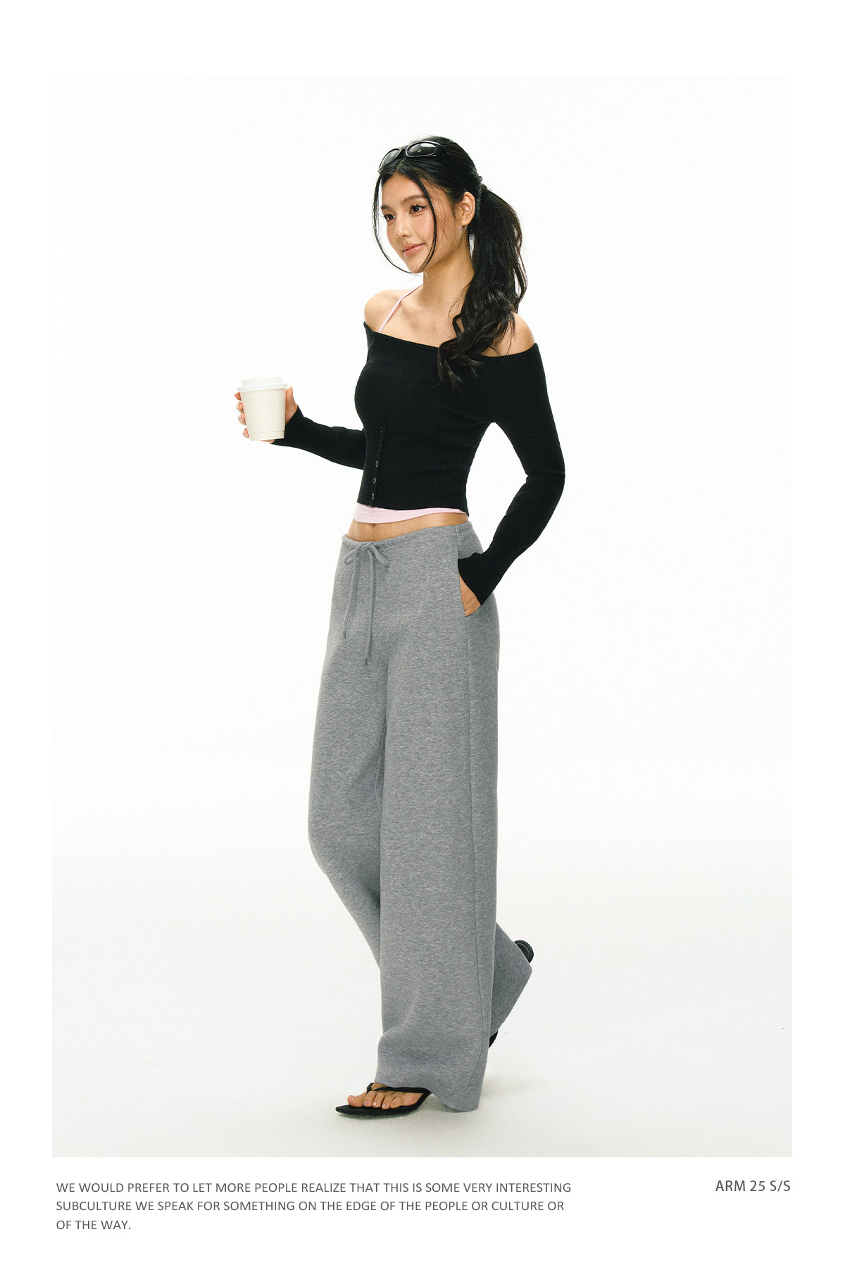 Ariseism 松弛感抽绳腰头高腰阔腿弯刀卫裤女冬季新款休闲长裤子