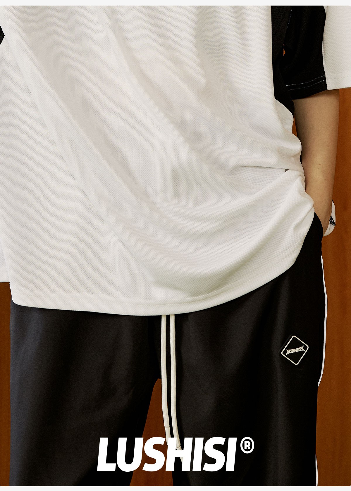 LUSHISI新款美式街头篮球四五分短裤跑步休闲创意设计[拼接色块]