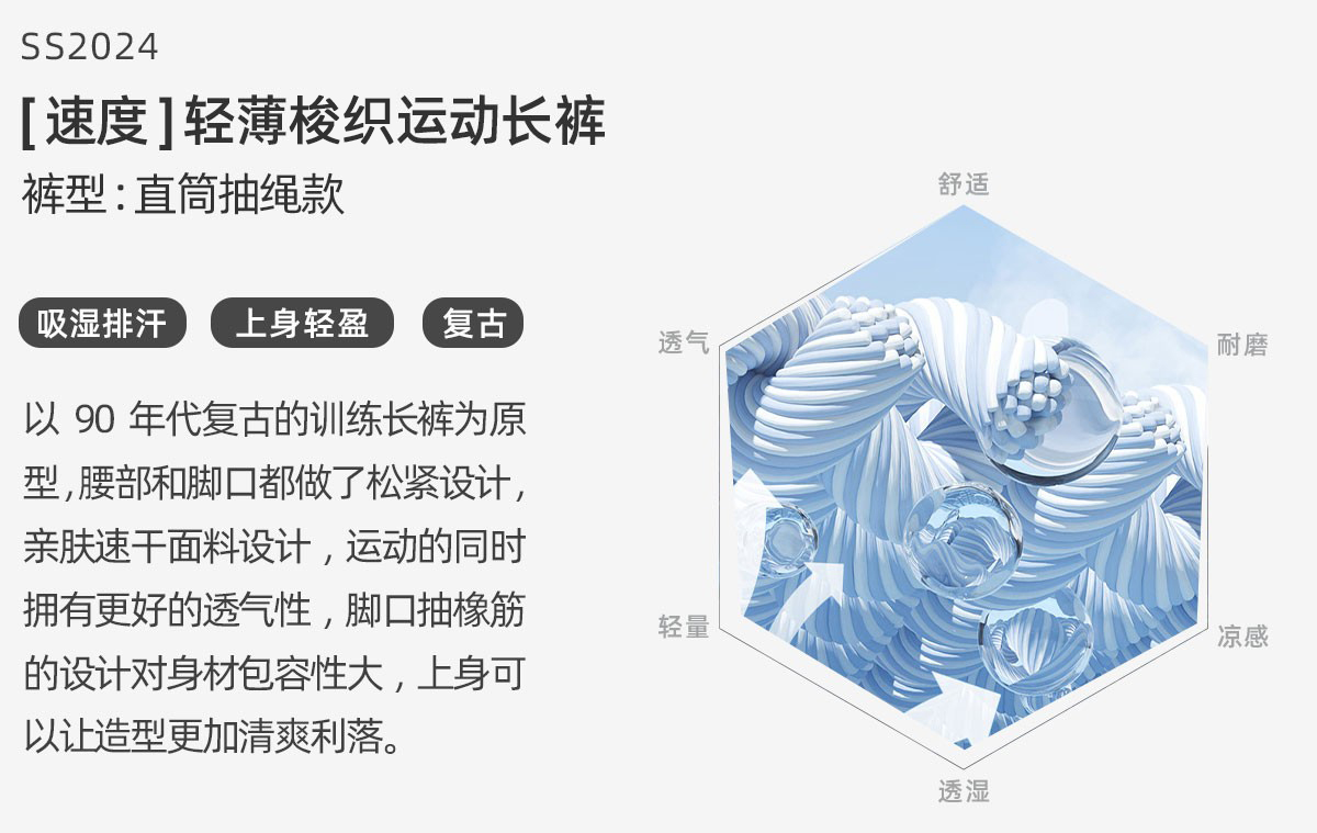 LUSHISI[速度]运动篮球长裤速干面料抽绳夏季直筒束脚裤训练薄款