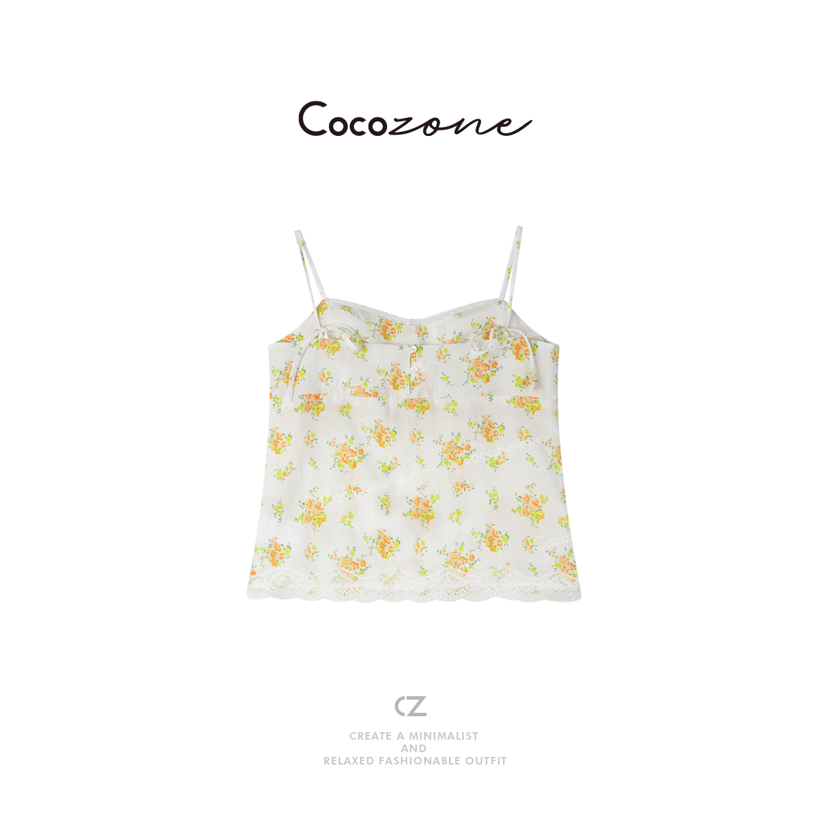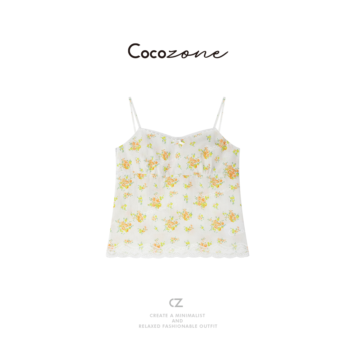 COCO ZONE刘一一 【亚麻棉】定位印花蕾丝拼接吊带背心CD1A0250