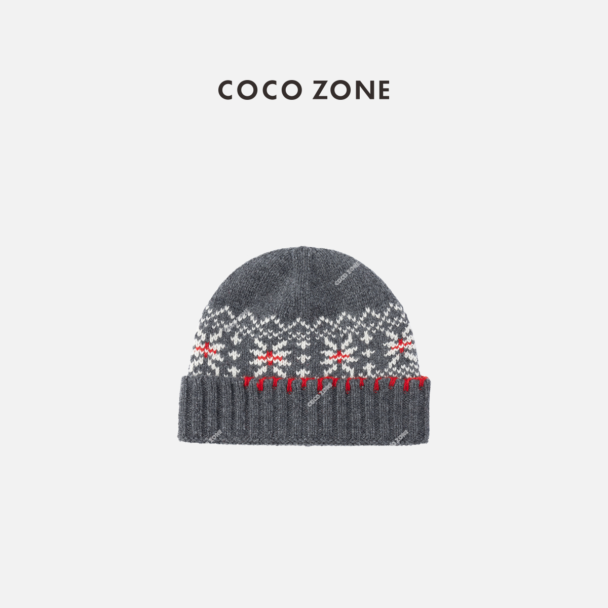 COCO ZONE 秋冬复古费尔岛提花毛线针织帽CC1D2465
