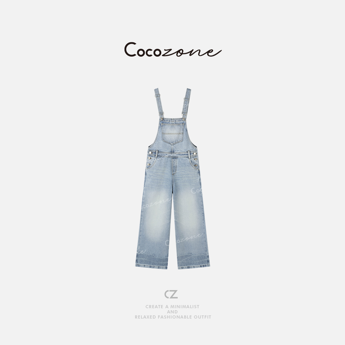 COCO ZONE 刘一一 25春季新款复古水洗百搭牛仔背带裤CD1A0472