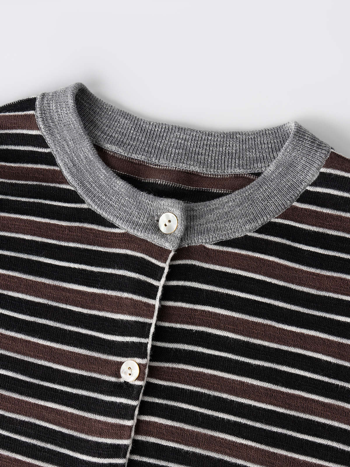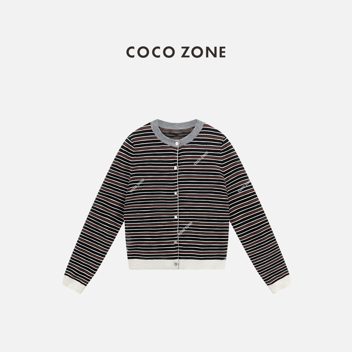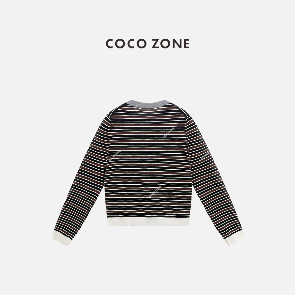 COCO ZONE 条纹长袖针织衫简约圆领单排扣上衣CC1B1524